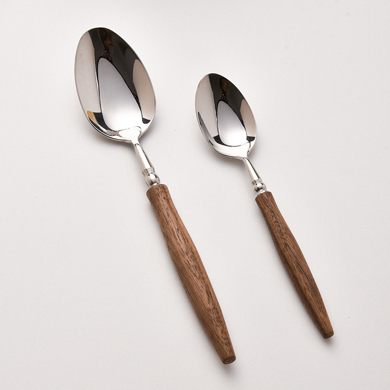 纯实木304不锈钢勺子高档轻奢抑菌叉勺筷叉勺套装精致家用餐具FAS
