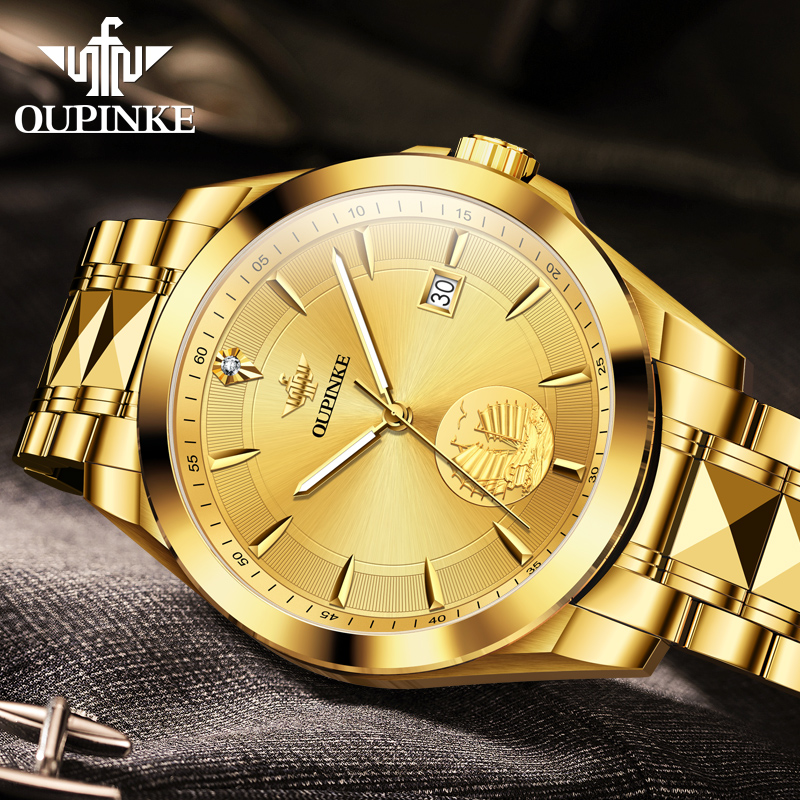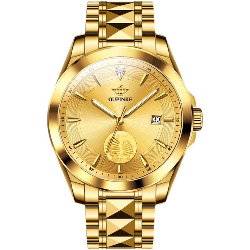 瑞士认证正品牌含黄金手表男士机械表全自动真钻进口芯款18K金色