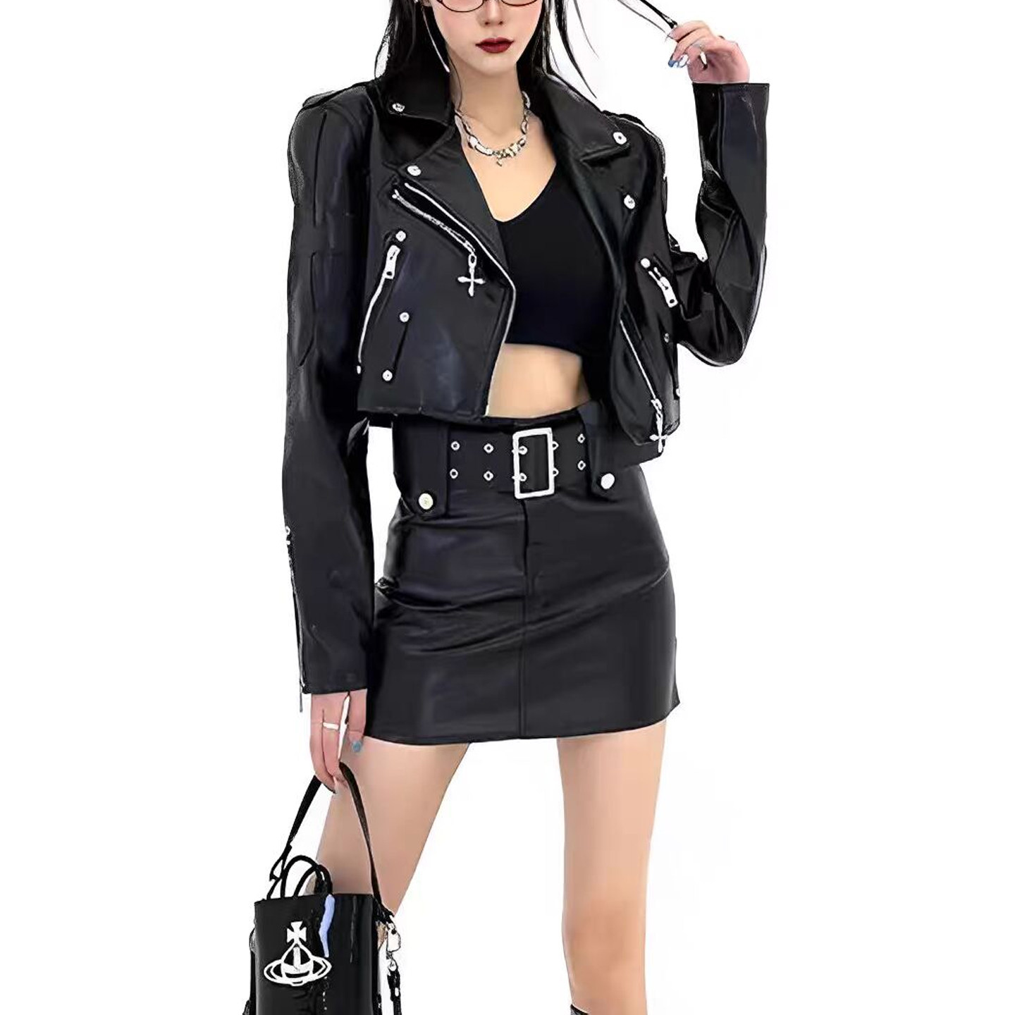 秋装2025年新款短款拉链皮衣外套女机车酷辣妹炸街上衣