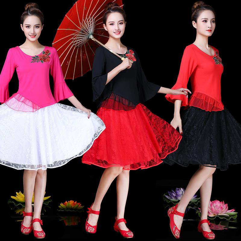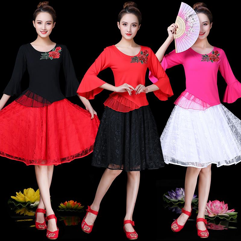 新款杨丽萍广场舞服装新款莫代尔上衣女中老年跳舞衣民族风绣花演