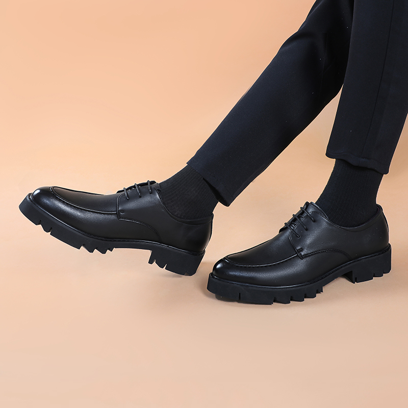 男士增高皮鞋男韩版软底透气休闲内增高6cm黑色英伦商务潮流鞋子