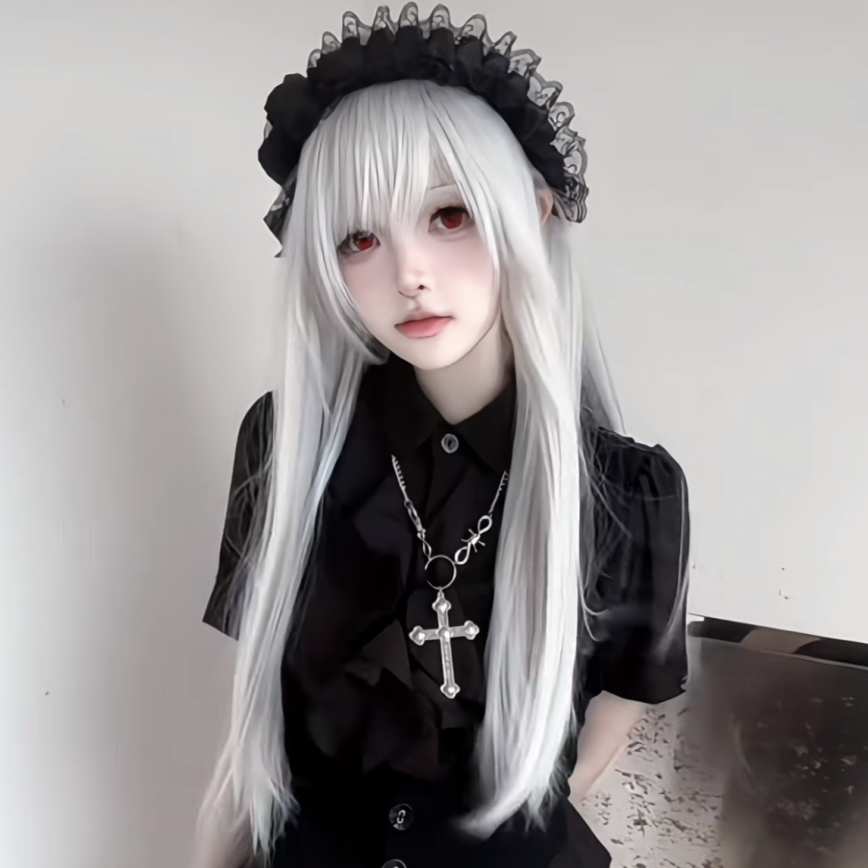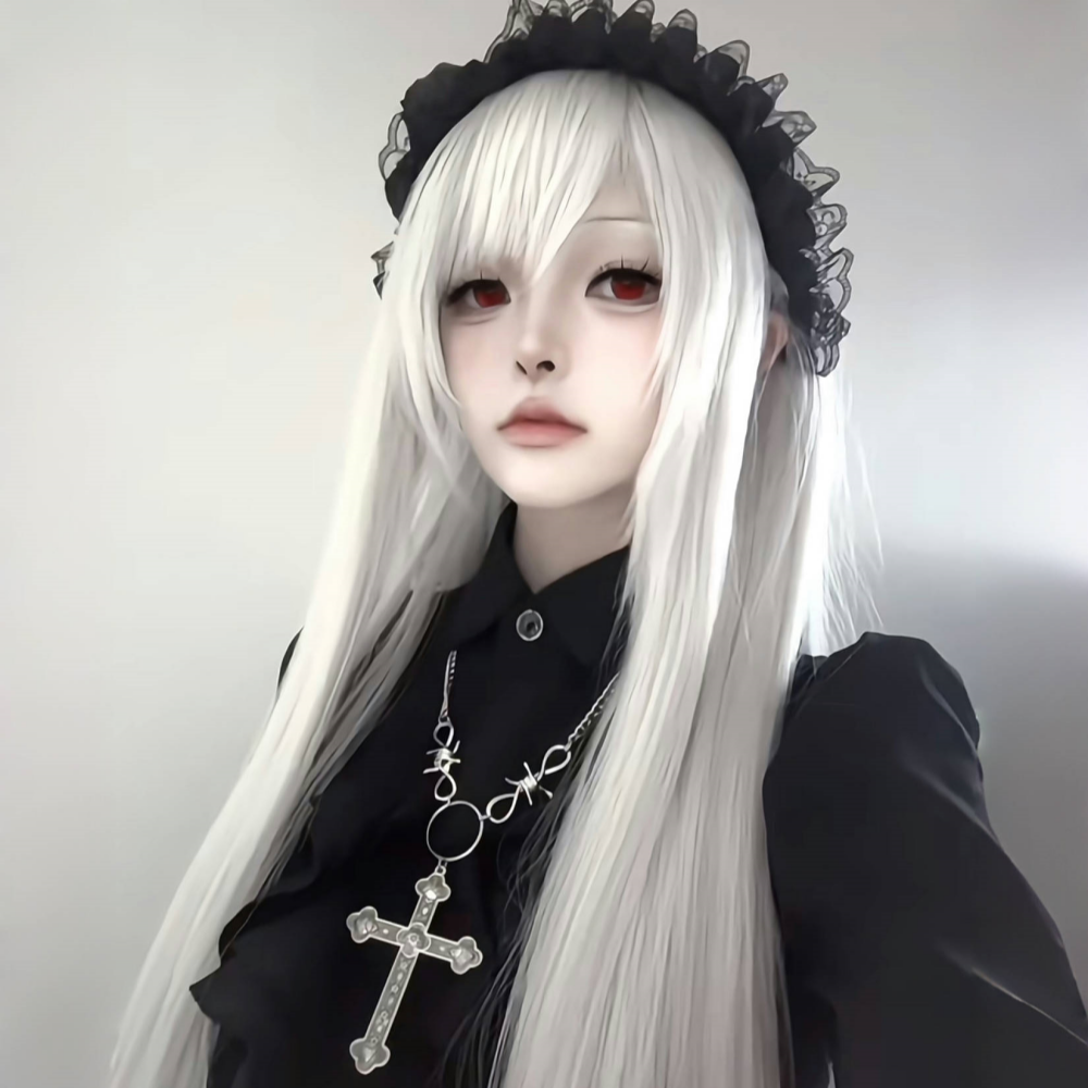 哥特暗黑假发女长直发lolita自然齐刘海毛坯发纯白色亚比风全头套