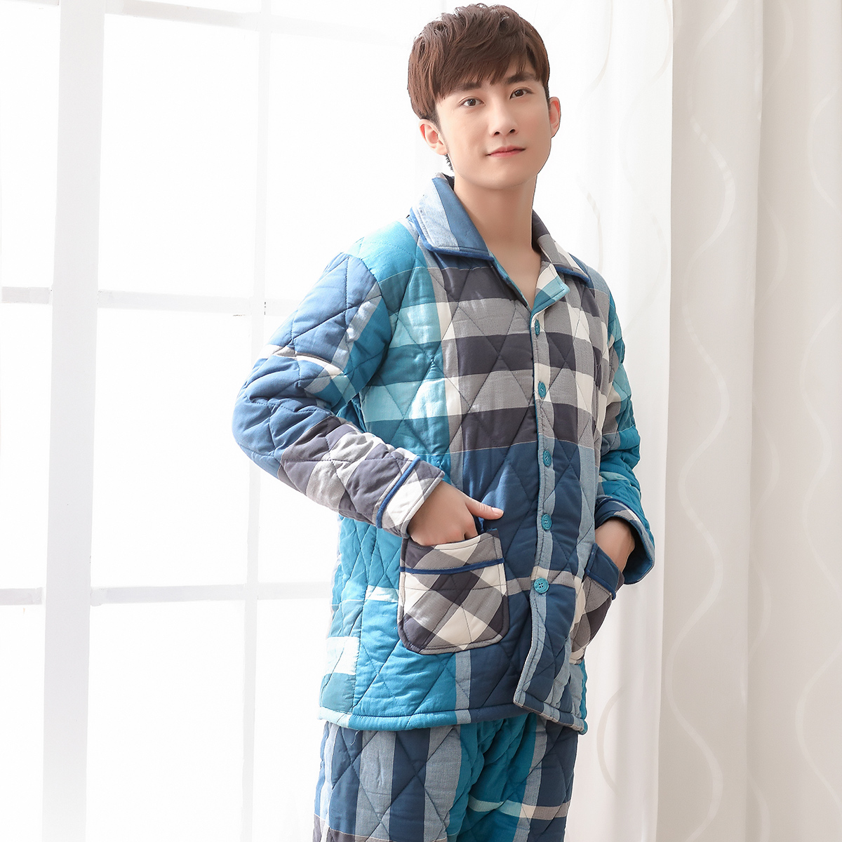 秋冬款纯棉夹棉男士睡衣套装冬季加厚大码冬天全棉保暖家居服男款