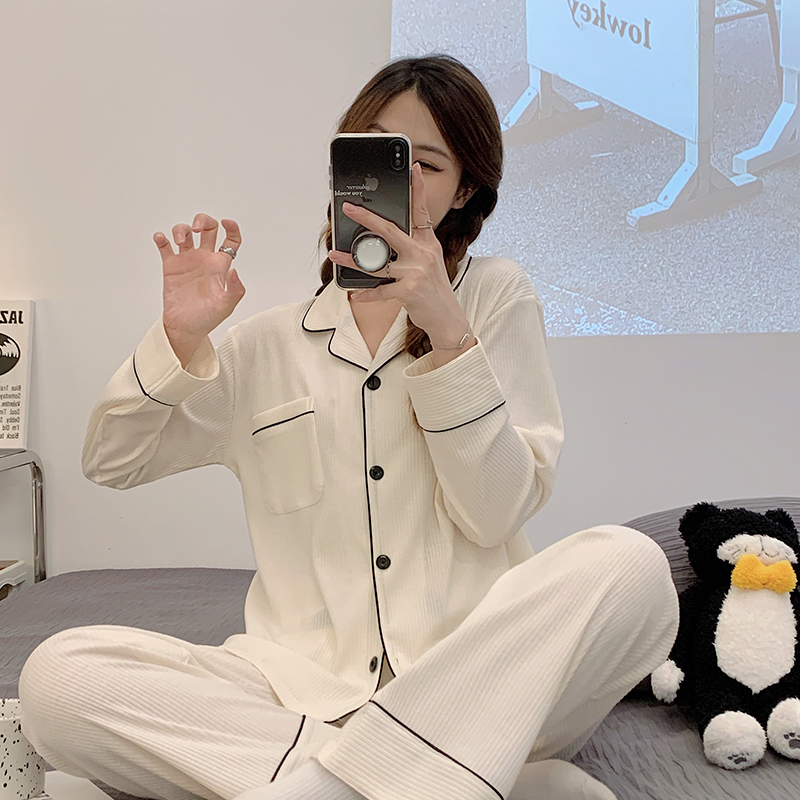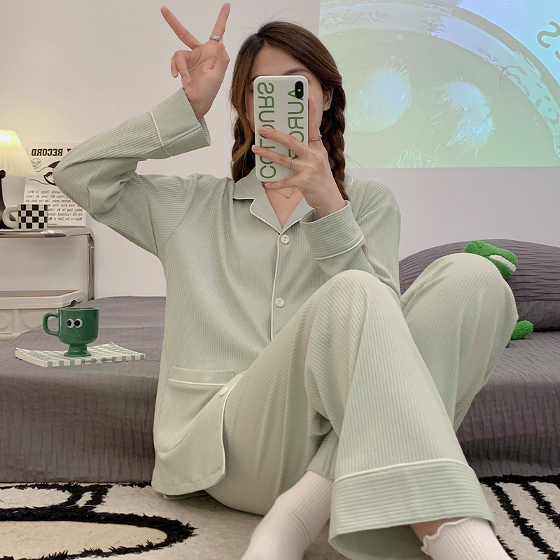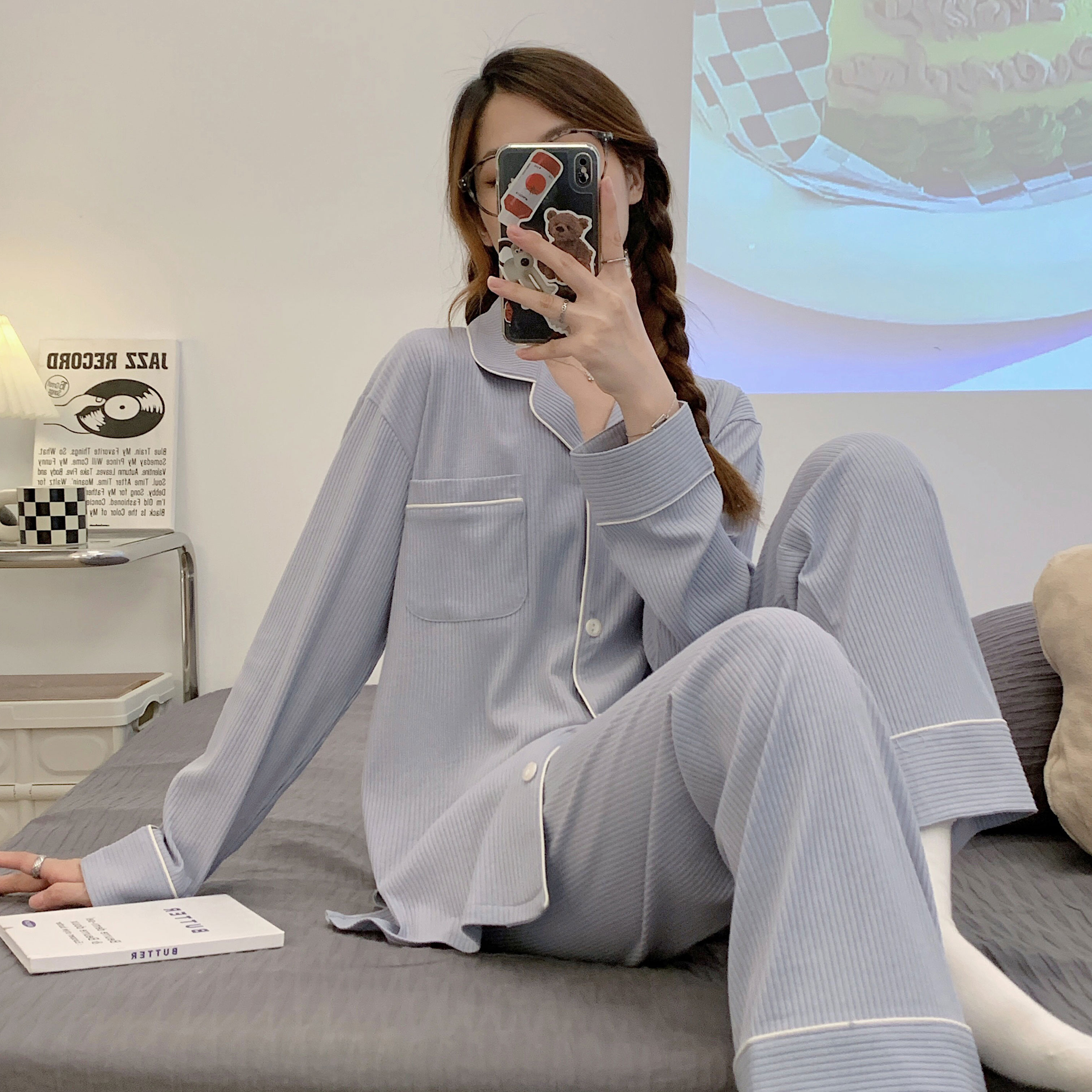 芬腾纯棉睡衣女春秋季长袖长裤2025新款夏季简约舒适家居服套装可