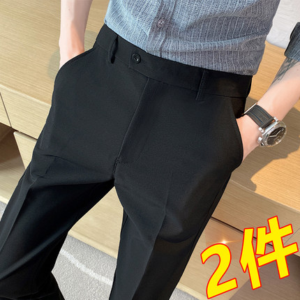 春季弹力西裤男士休闲九分裤子男黑色修身直筒商务正装小西装长裤