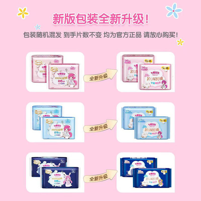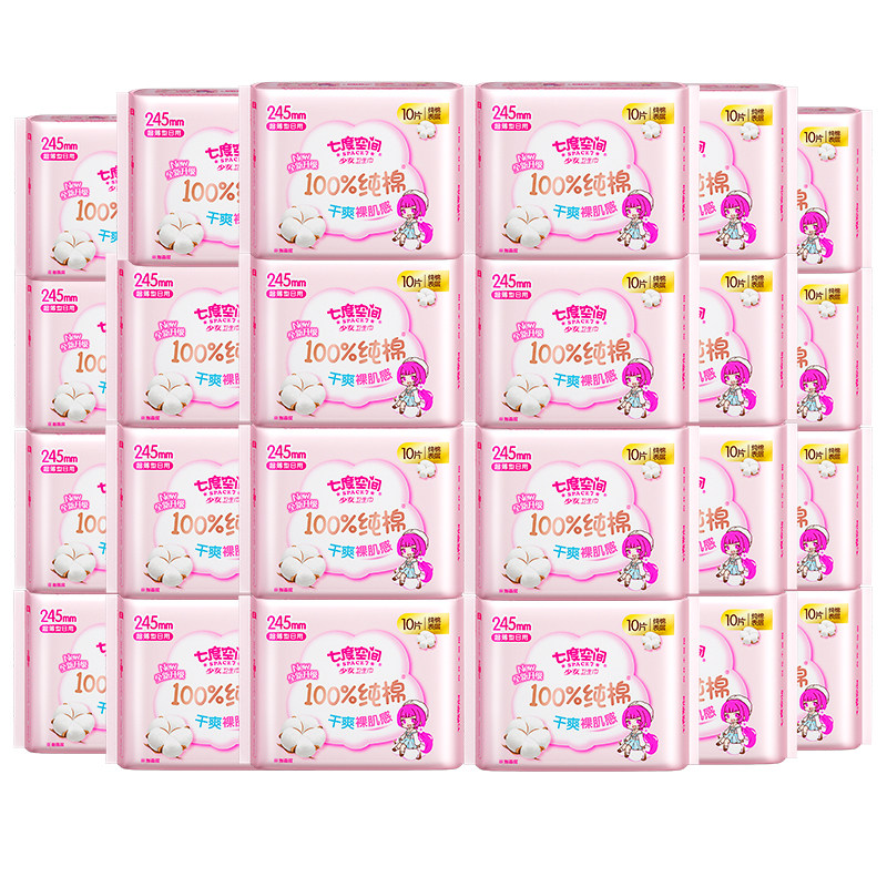 七度空间卫生巾正品纯棉少女系列日用245mm姨妈巾整箱官方正品