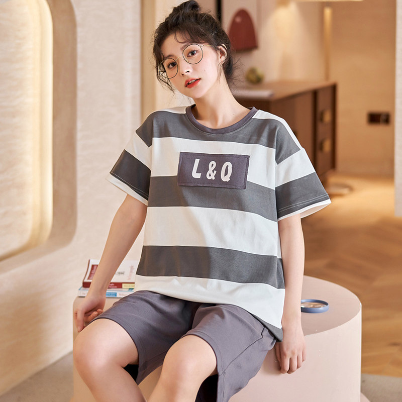 夏天纯棉睡衣女士薄款睡衣春夏季短袖全棉家居服宽松大码胖MM套装