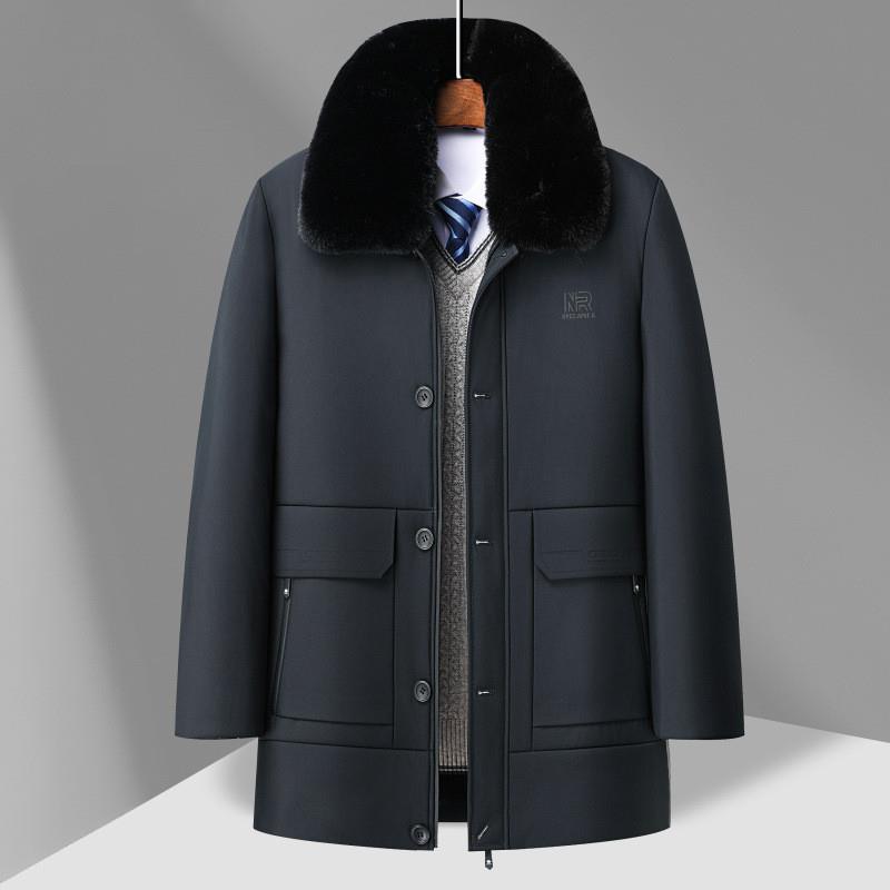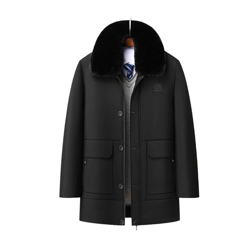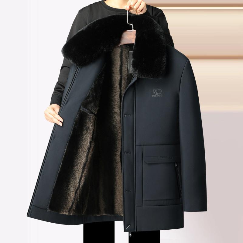冬季脱卸外套男装中年男士加绒加厚棉衣棉服大毛领爸爸中长款外