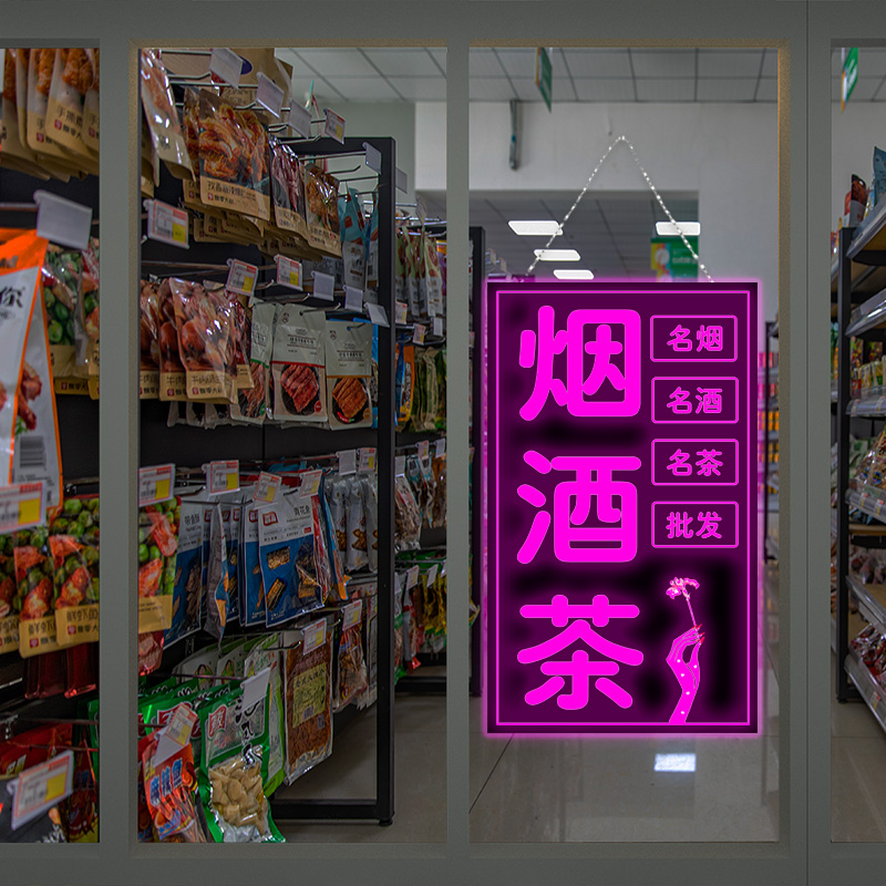 烟酒茶零食便利店广告牌超市玻璃门口悬挂led充电灯箱发光招牌定