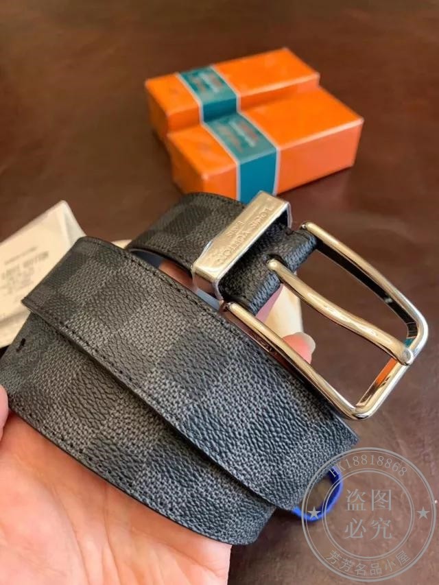 新款 奢店2024 LV/路易威登 棋盘格针扣男士腰带皮带M9402S 35MM