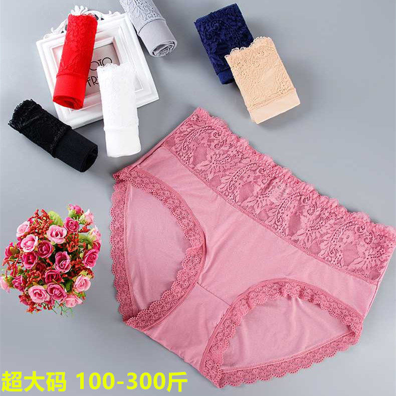 加肥加大蕾丝内裤冰丝无痕短裤300女中高腰特大码胖MM200斤三角裤