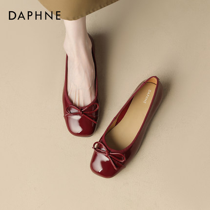达芙妮单鞋女2026新款春季女鞋法式浅口平底皮鞋红色瓢鞋春款婚鞋