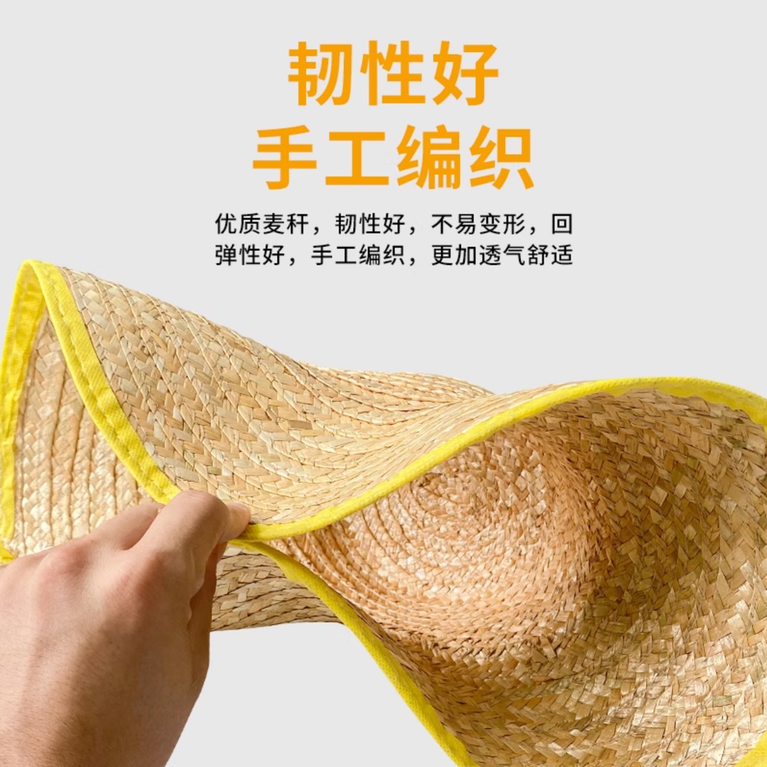 农民工麦秆草帽工地钓鱼户外大沿男田园遮阳防晒女大檐太阳帽定制