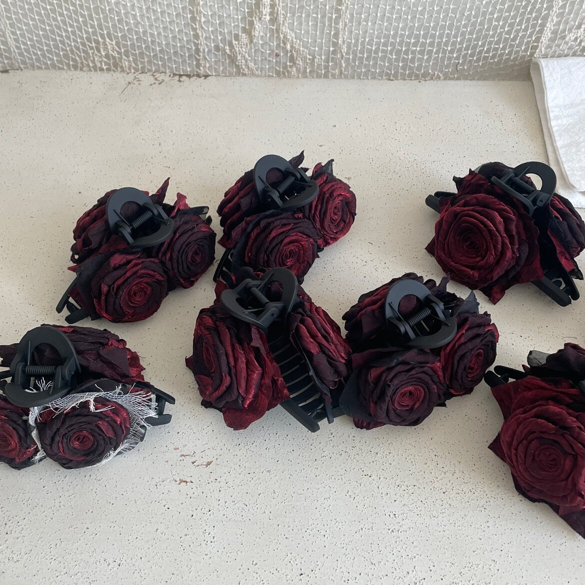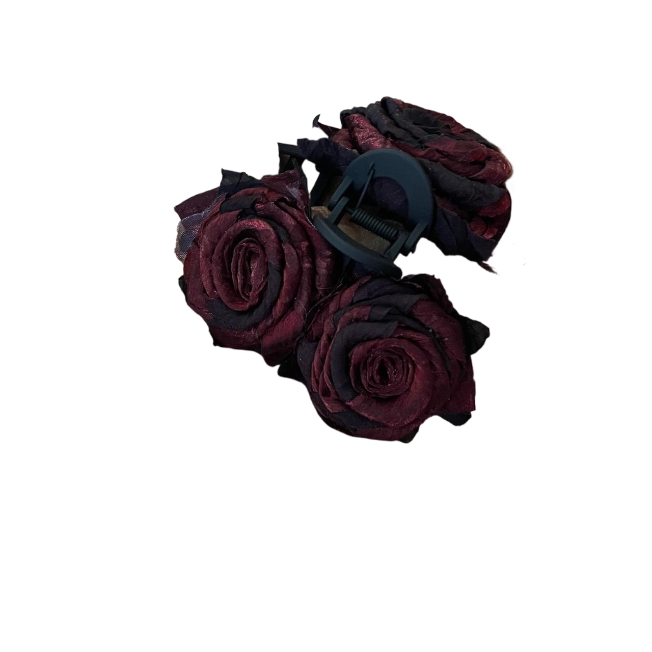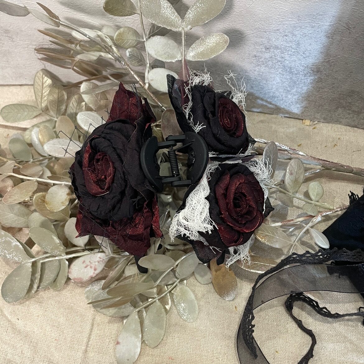 手作暗黑布艺玫瑰花朵大号鲨鱼夹红黑色lolita哥特式布艺抓夹发饰