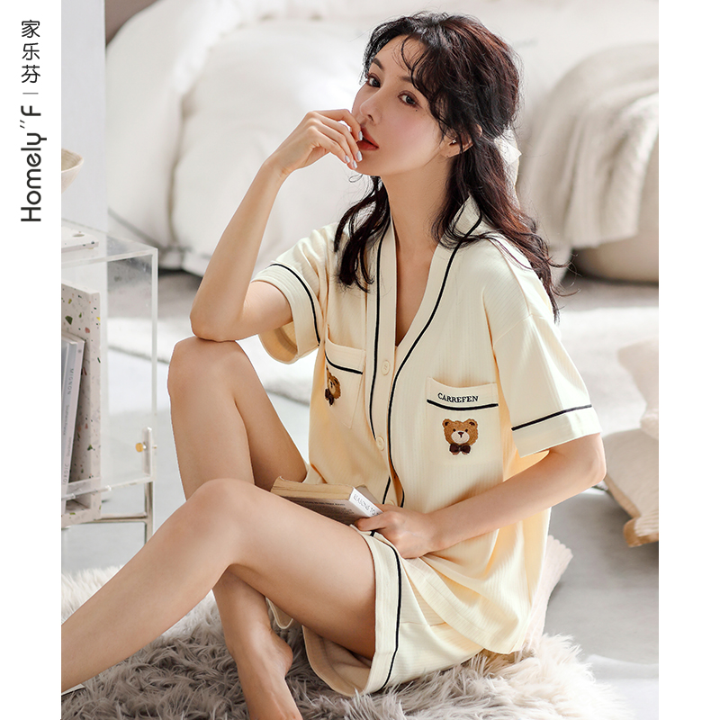 家乐芬睡衣女士夏季纯棉短袖短裤家居服女款夏天夏款薄款大码套装