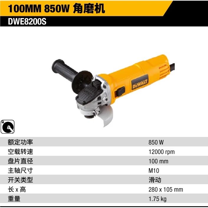 得伟DWE8200S角磨机8200T切割打磨850W石材切金属切割得伟角磨机