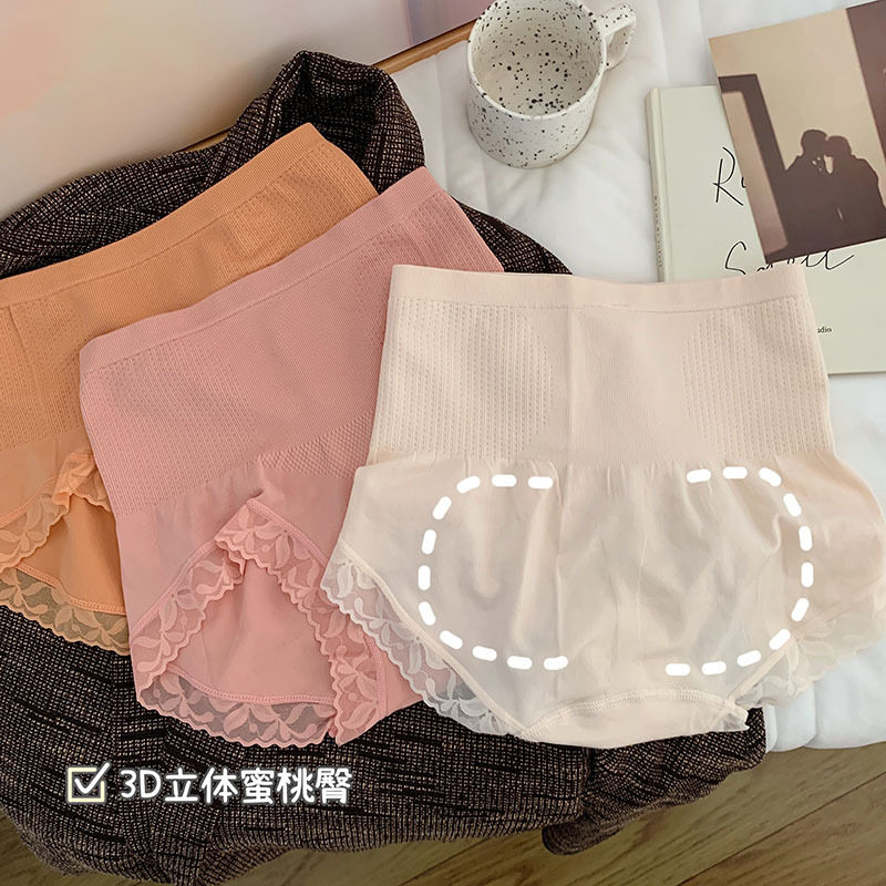 秋冬高腰收腹内裤女士无缝一体高弹蜜桃臀底裤头螺纹棉裆蕾丝包臀