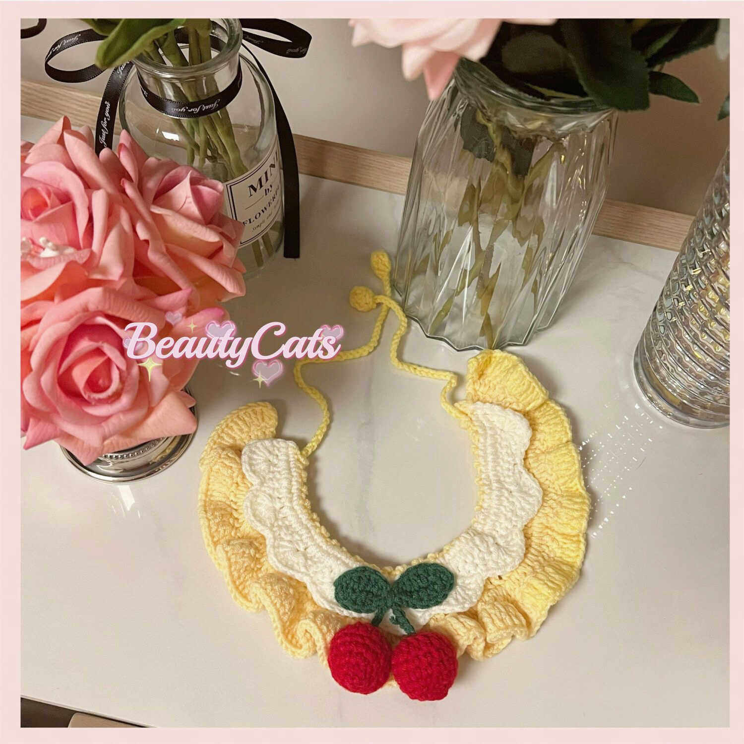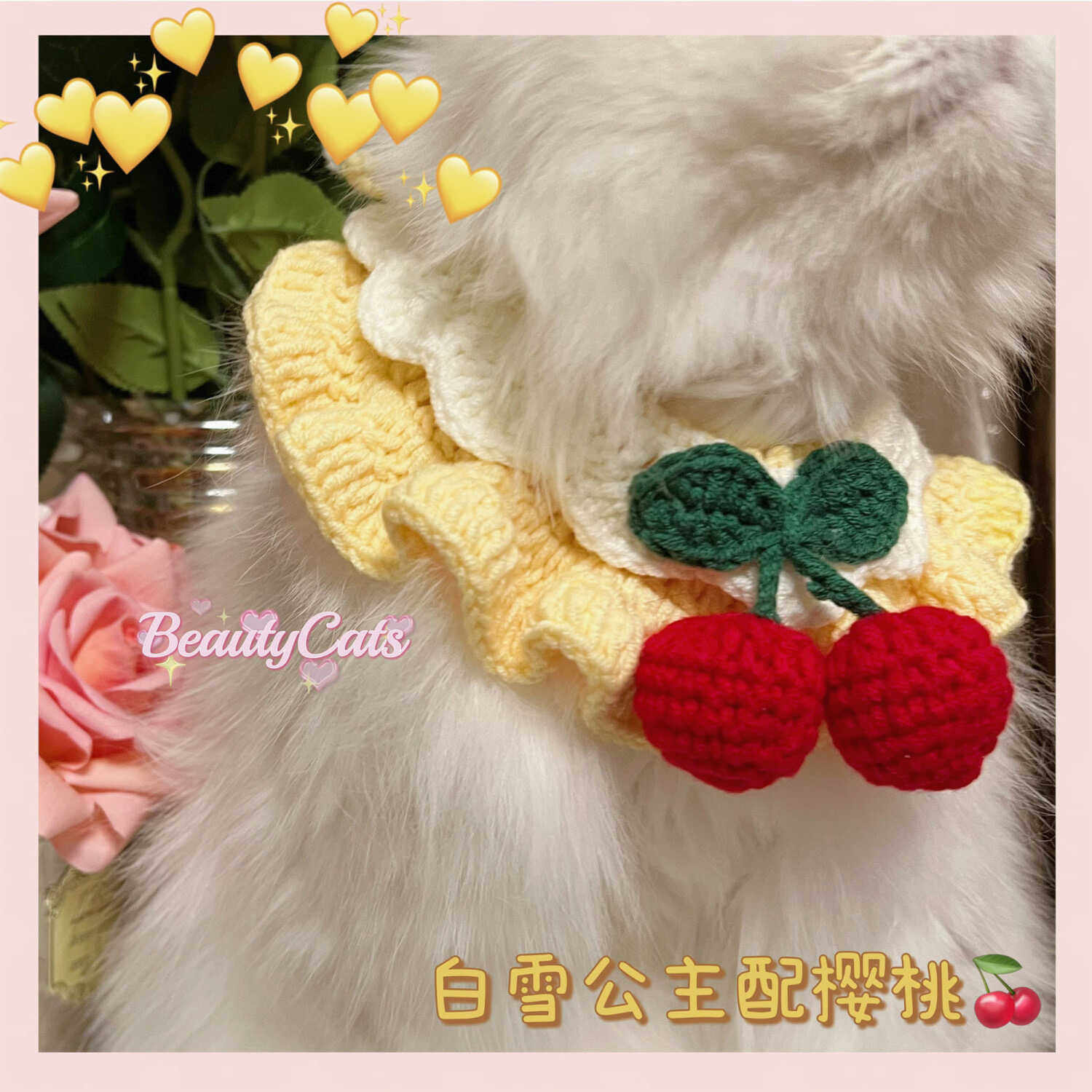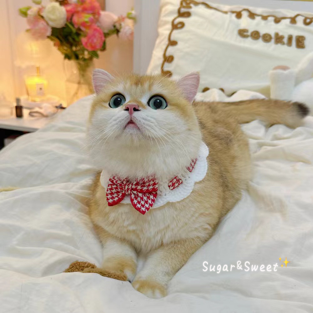猫咪围脖樱桃铃铛蝴蝶结花朵项圈脖套围脖可爱宠物狗狗针织围巾