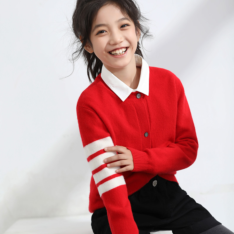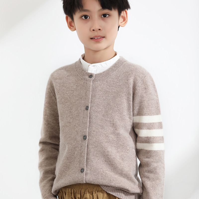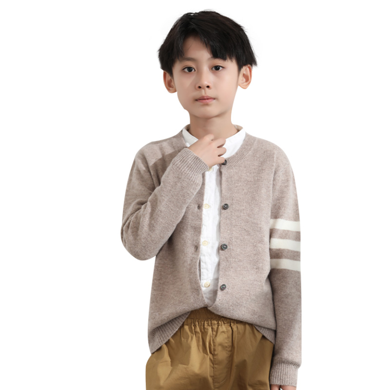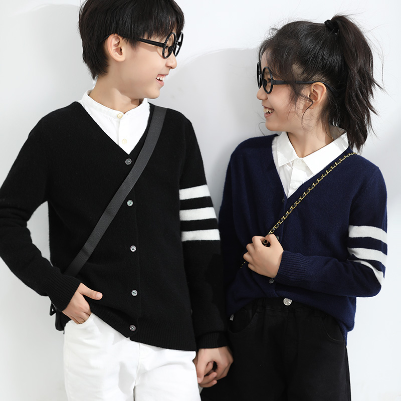 明星同款TB羊毛开衫儿童圆领薄款外套男童针织羊绒开衫女童中大童