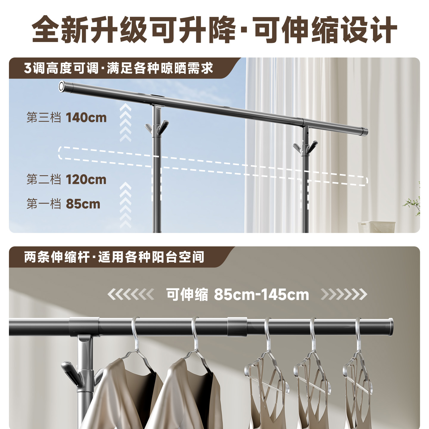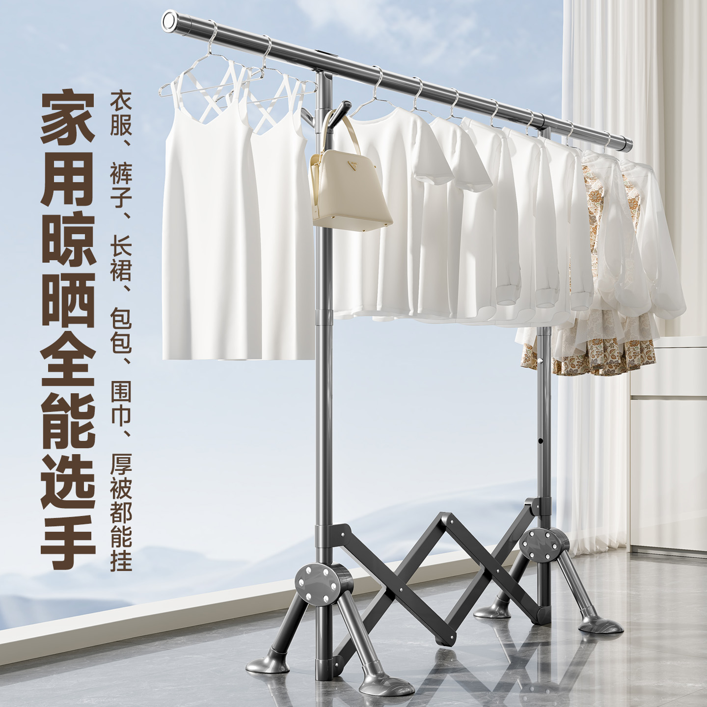 室内家用折叠落地晾衣架小户型阳台伸缩晾衣杆晒被神器卧室挂衣架