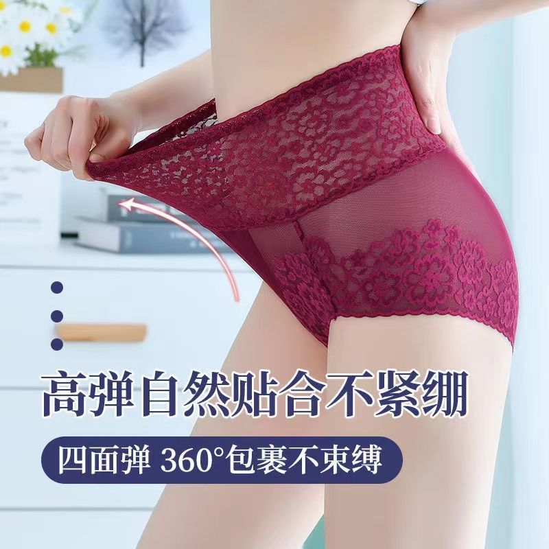 2-4件装蕾丝高腰收腹内裤女收小肚子女士纯棉抗菌裆性感提臀内裤