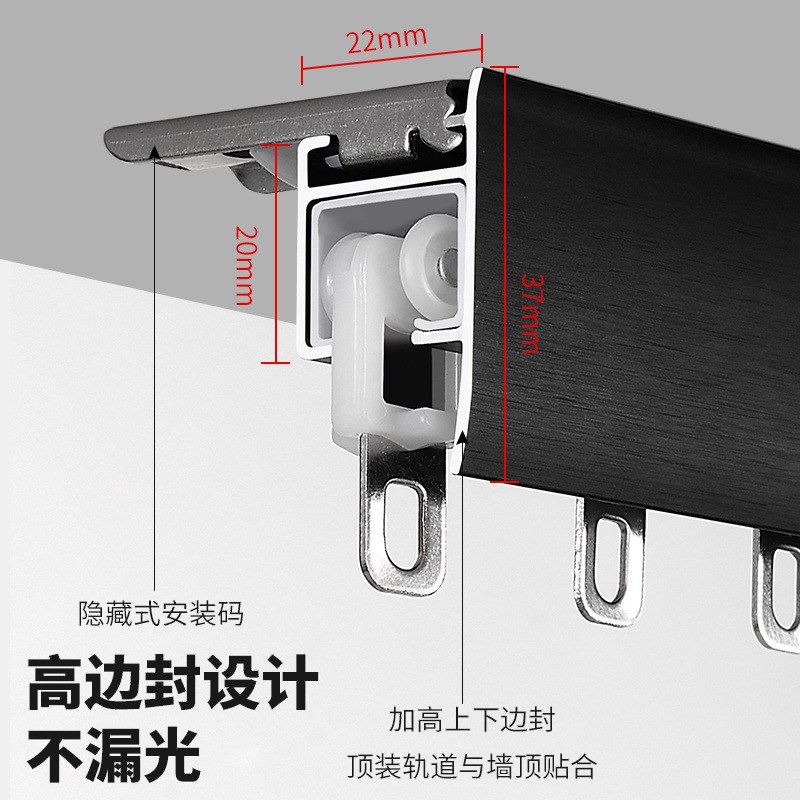 双眼皮窗帘盒轨道一体顶装智能灯带挡板铝合金双轨道遮挡