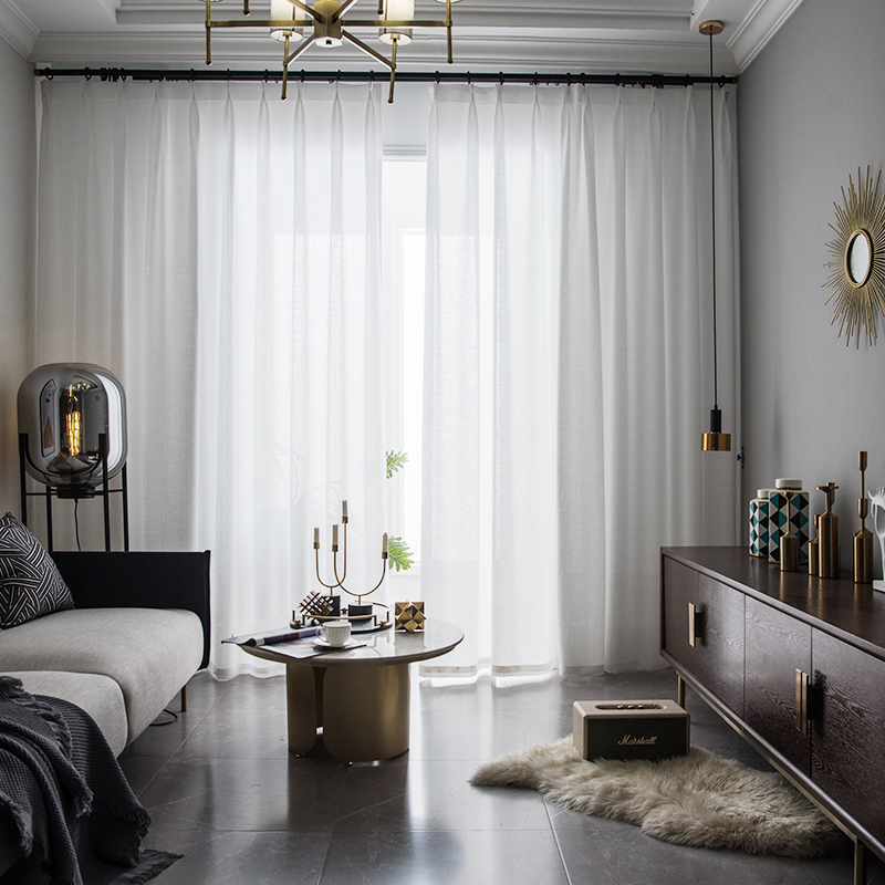 新款透光不透人窗纱窗帘飘窗白纱阳台纱隔断客厅半遮光窗纱布料