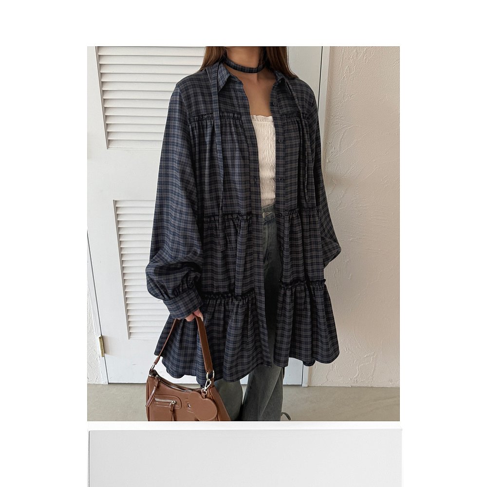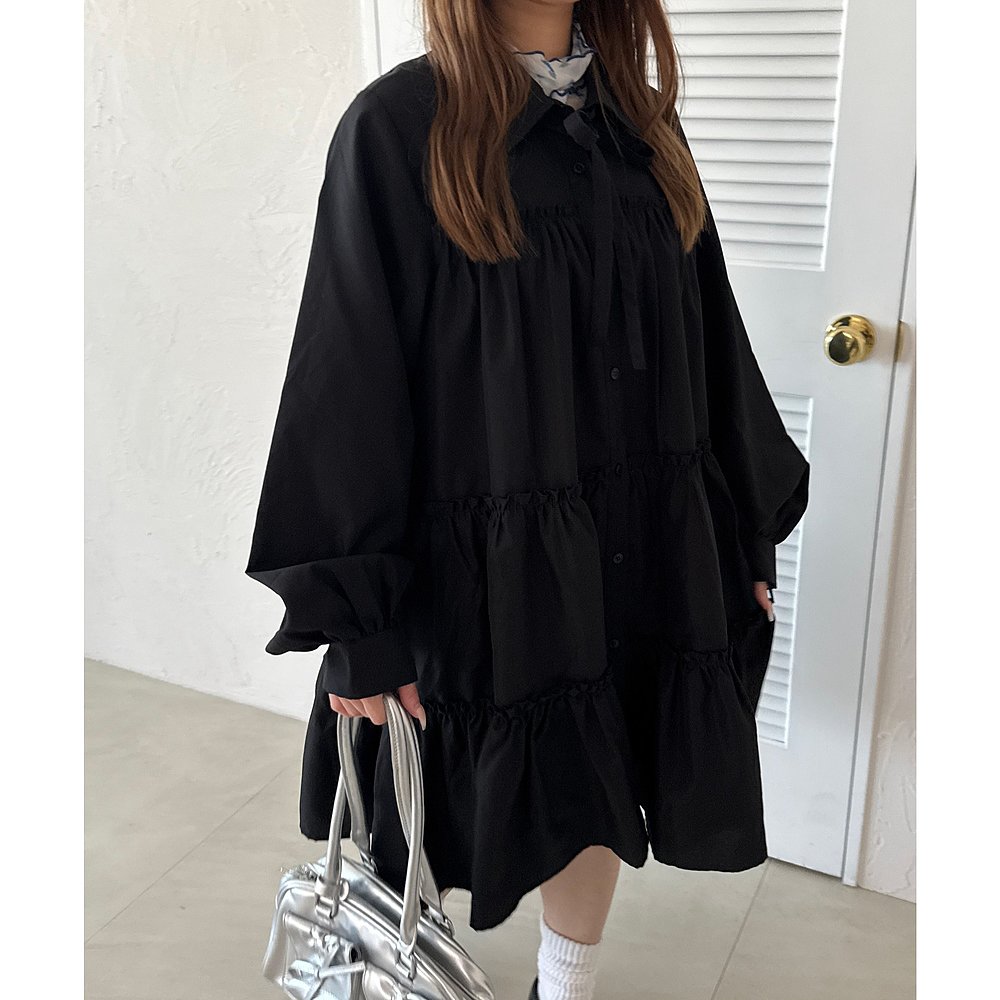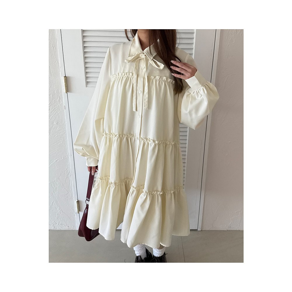 1h可退 日本直邮kutir 女装 多穿法拼接褶皱衬衫连衣裙 系带设计
