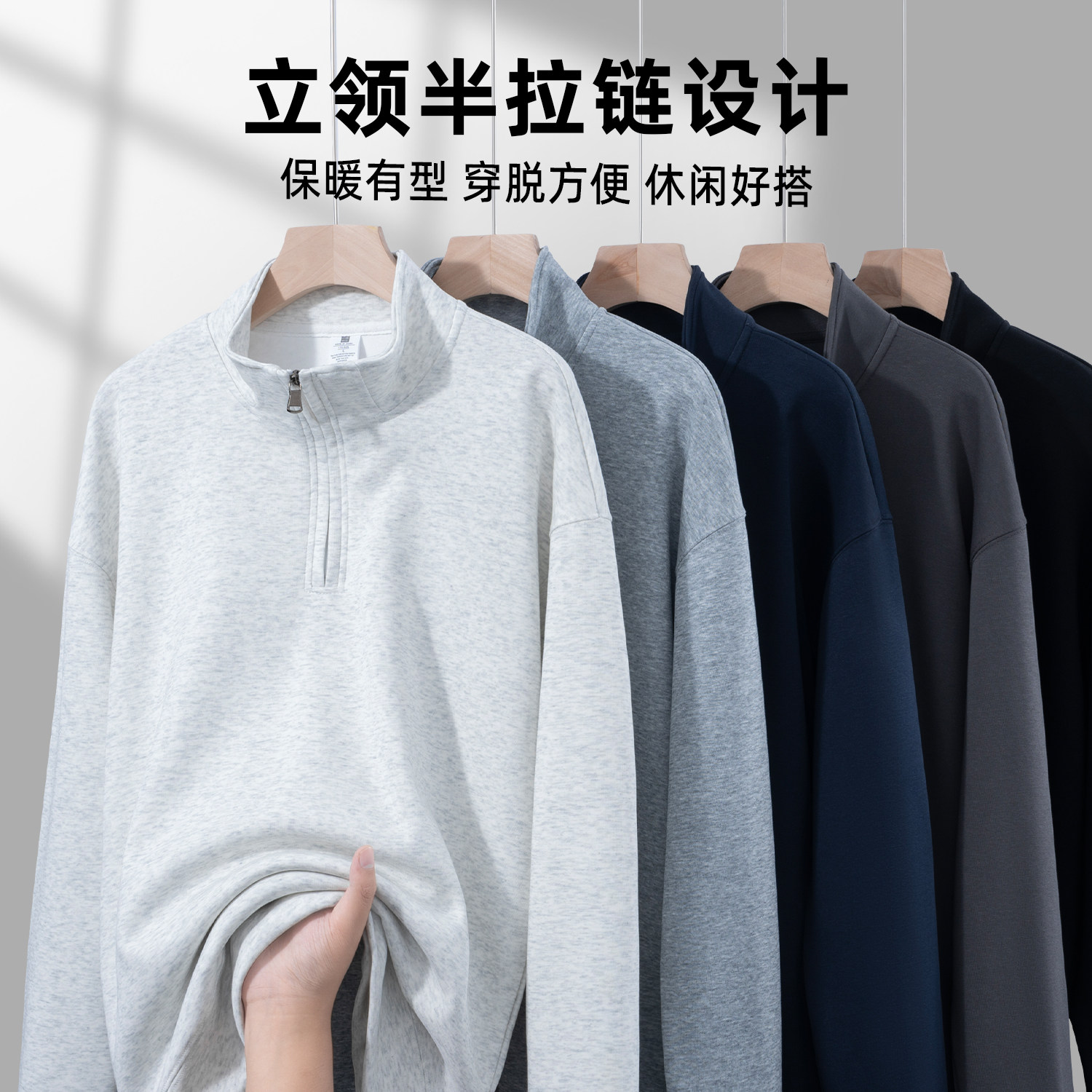 回力重磅花灰色套头半拉链卫衣男生长袖衣服2026新款春季宽松上衣
