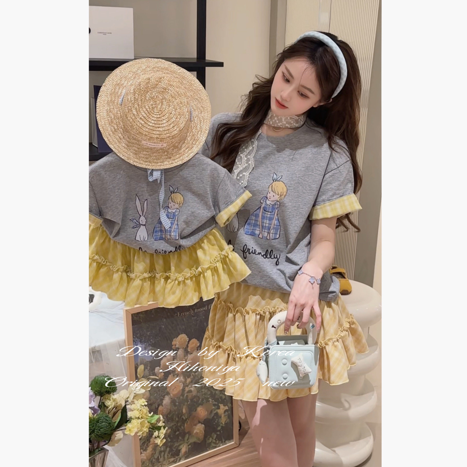 Spring韩国童装2025年春夏新款亲子卡通动漫甜美韩版短袖女童T恤