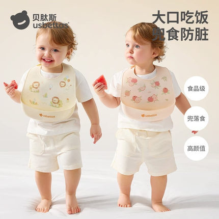 贝肽斯宝宝吃饭围兜防水硅胶辅食饭兜超软便携婴儿童围嘴防脏神器