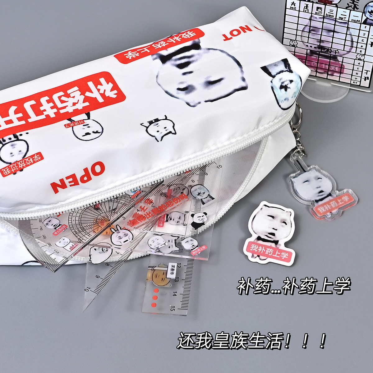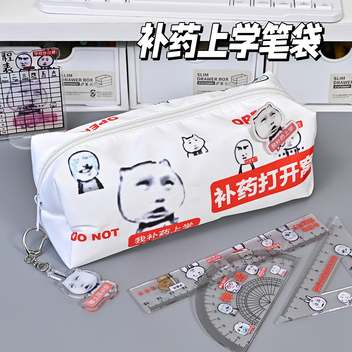 补药上学笔袋沙雕创意大容量学生桌面整理文字搞怪文具铅笔收纳盒