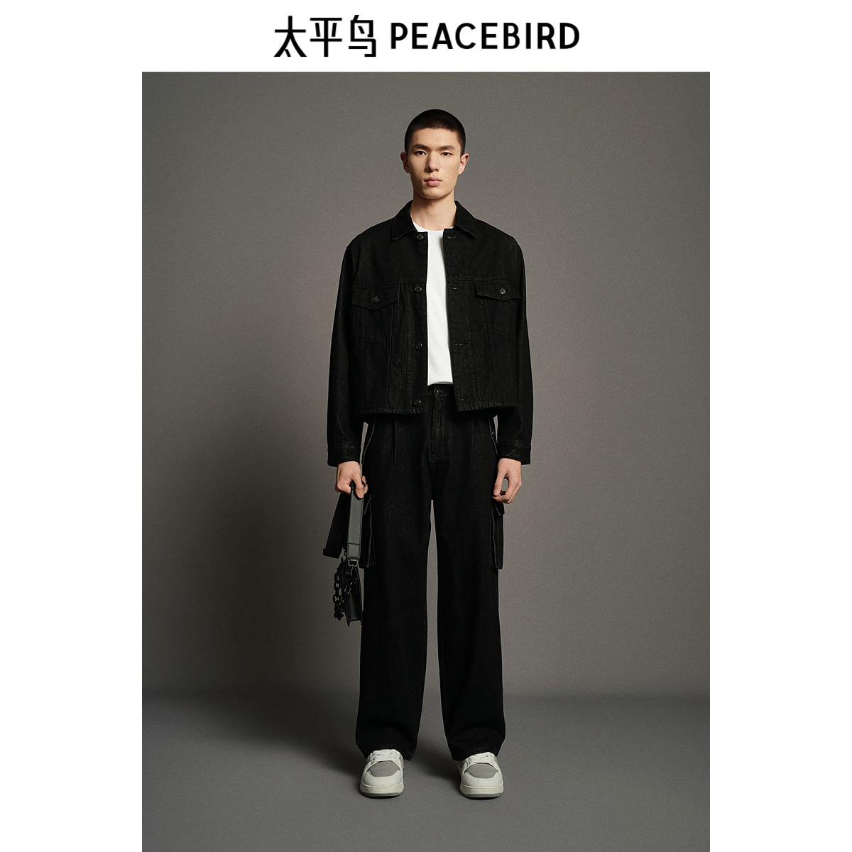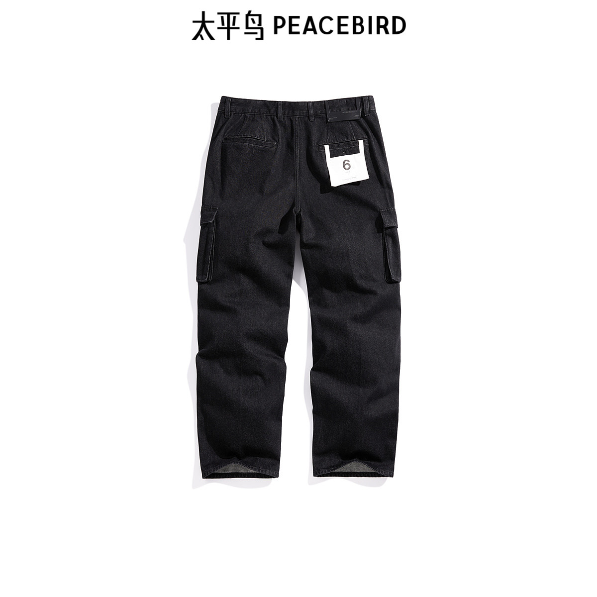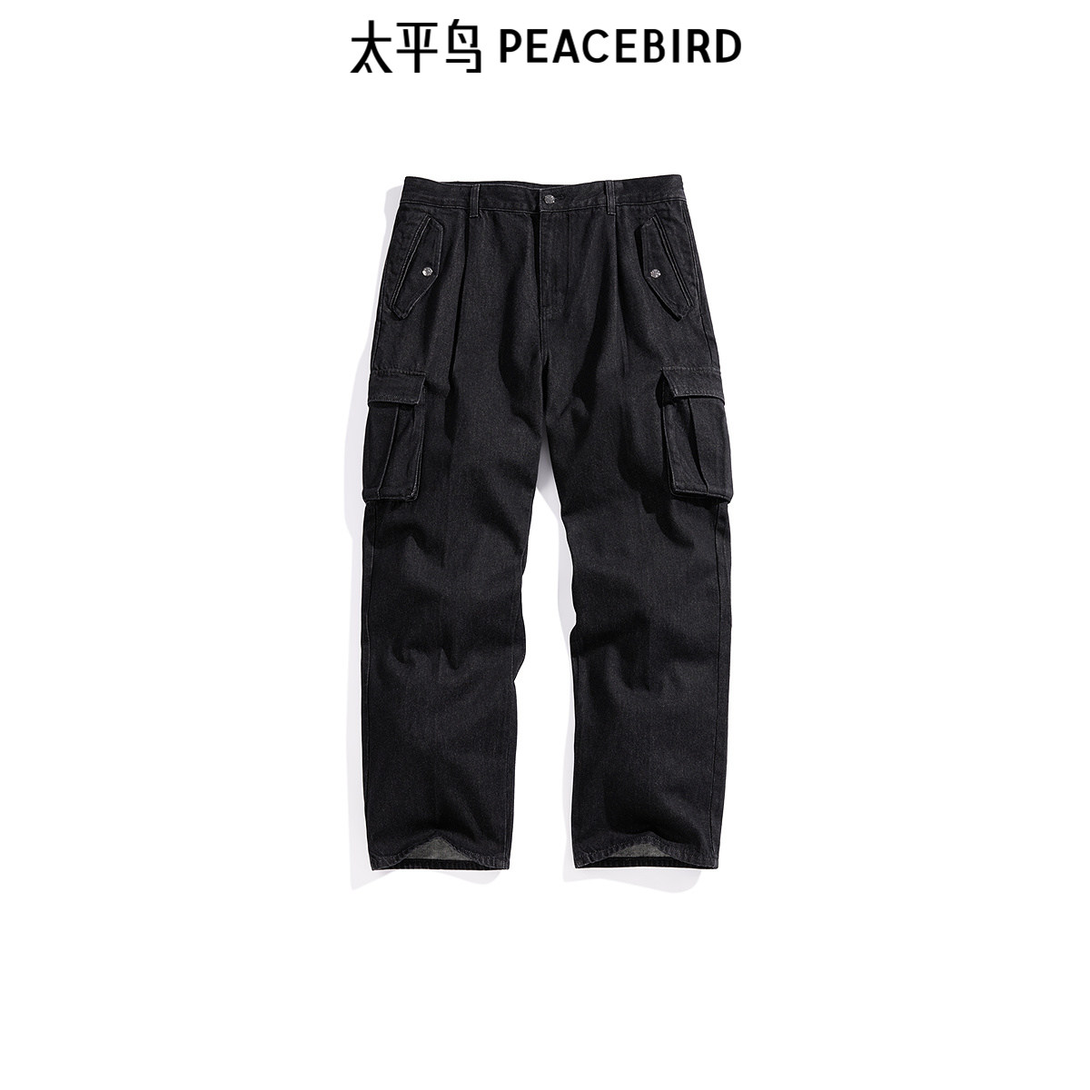 【商场同款】太平鸟男装 黑色工装宽松直筒潮流牛仔裤男B1HAE4C19