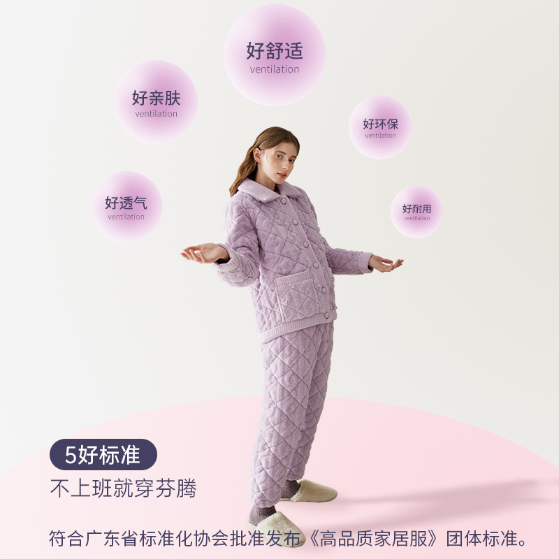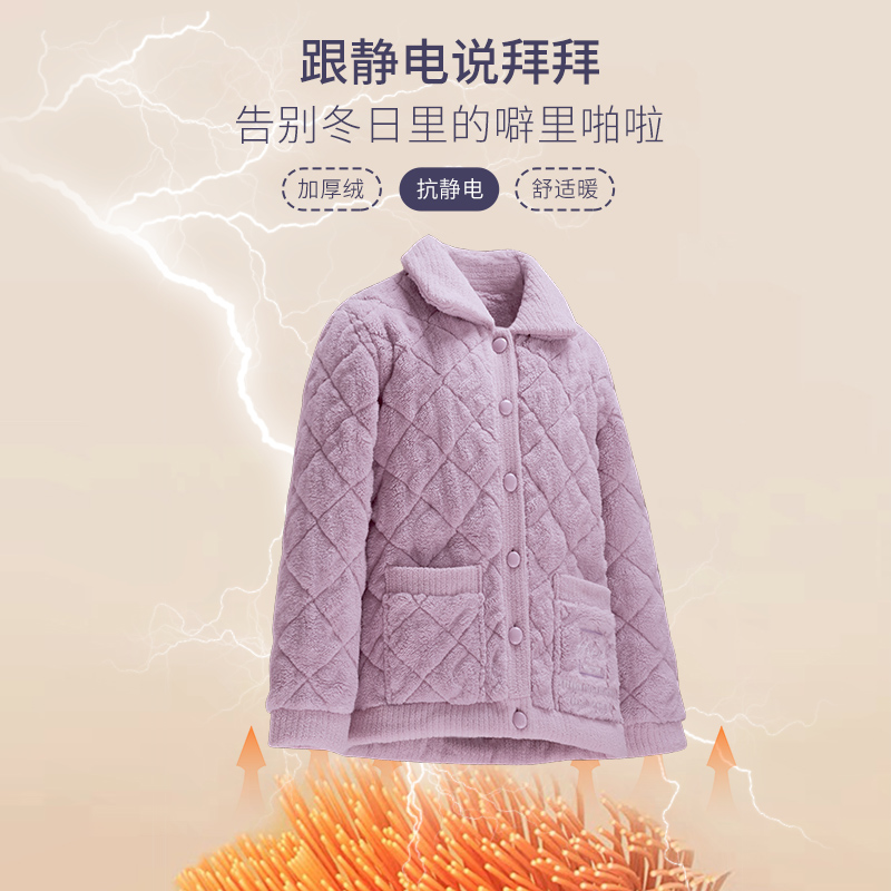 芬腾珊瑚绒夹棉情侣睡衣女加厚保暖冬季加绒法兰绒男士家居服套装