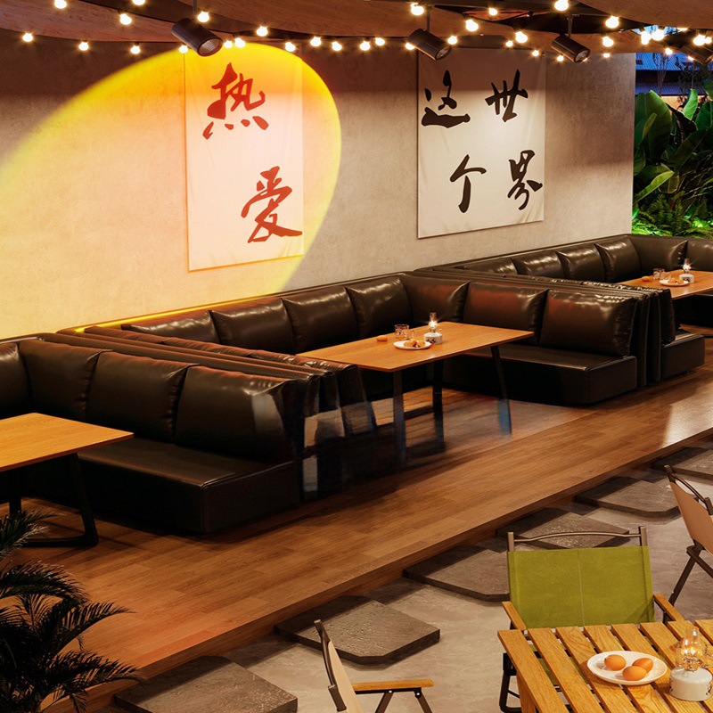 休闲露营风酒吧清吧音乐小酒馆卡座沙发咖啡厅奶茶烧烤店桌椅组合