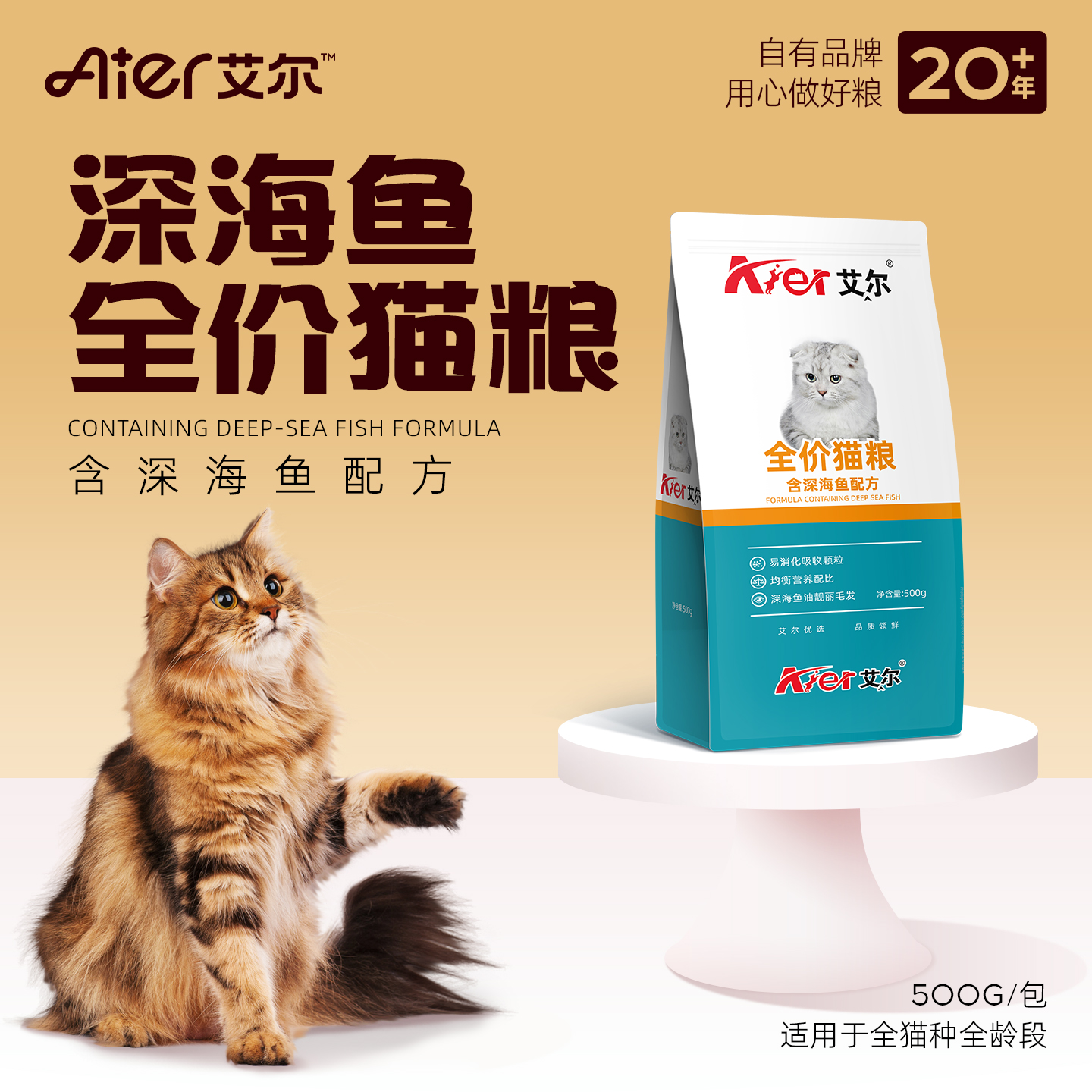 艾尔深海鱼全价成幼猫猫粮小包装 营养猫粮官方旗舰店正品500g*5