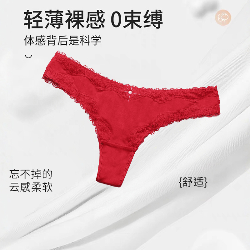 轻薄无痕丁字裤女 蕾丝边性感女士透气T裤女士丁字内裤红色白色