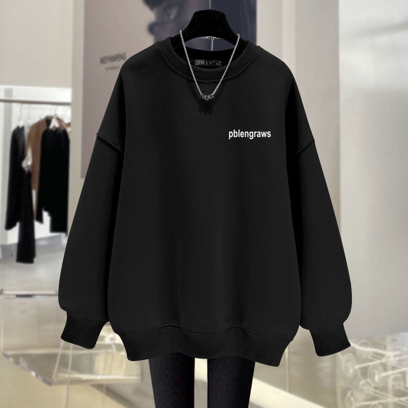 圆领卫衣女宽松中长款上衣百搭