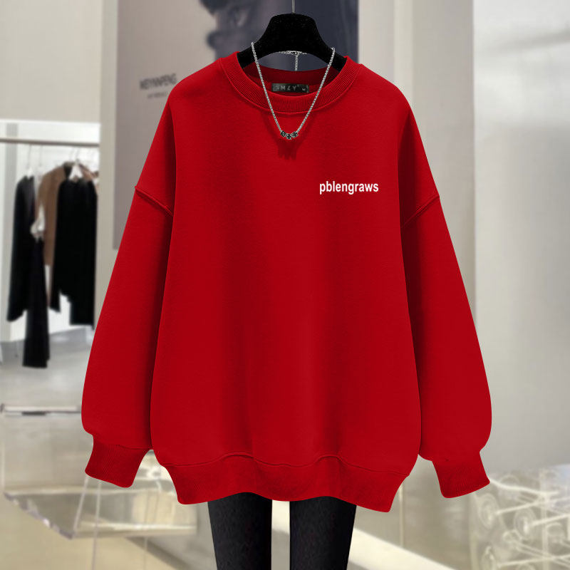 粉色圆领套头卫衣女2025新款秋冬简约字母百搭宽松加绒中长款上衣