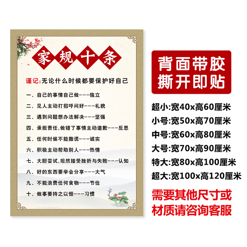 家规家训墙贴 定制十条标语儿童自律创意贴画抖音好孩子贴纸男孩