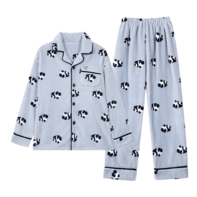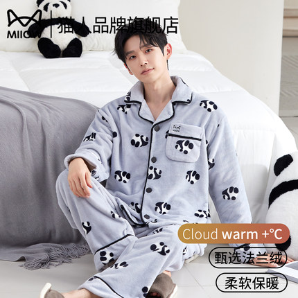 猫人睡衣男2025新款秋冬款法兰绒加绒男士青少年秋季家居服套装