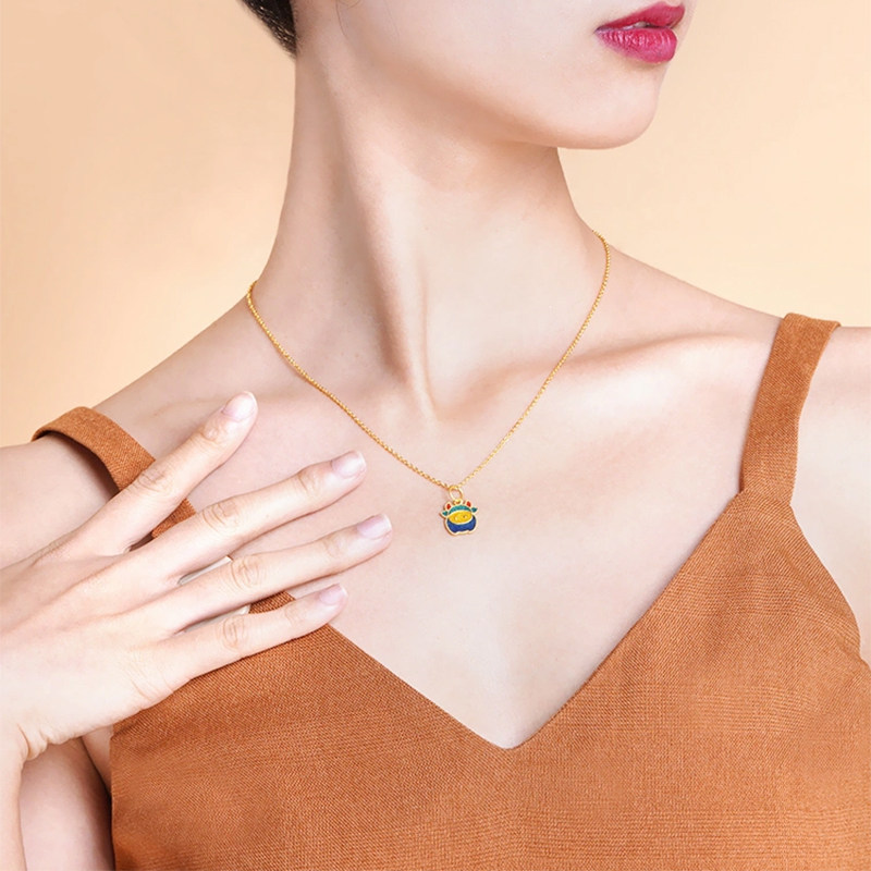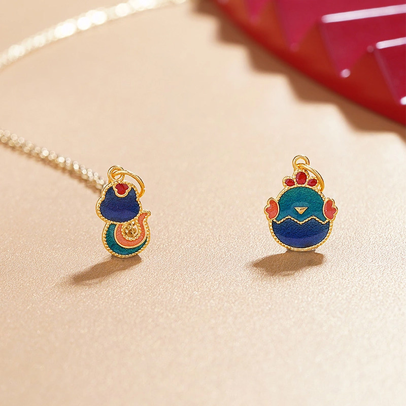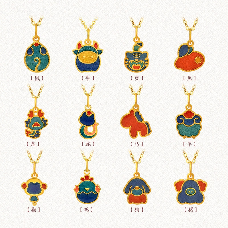 老庙黄金足金十二生肖马年实心双面珐琅吊坠挂坠本命年送礼物正品