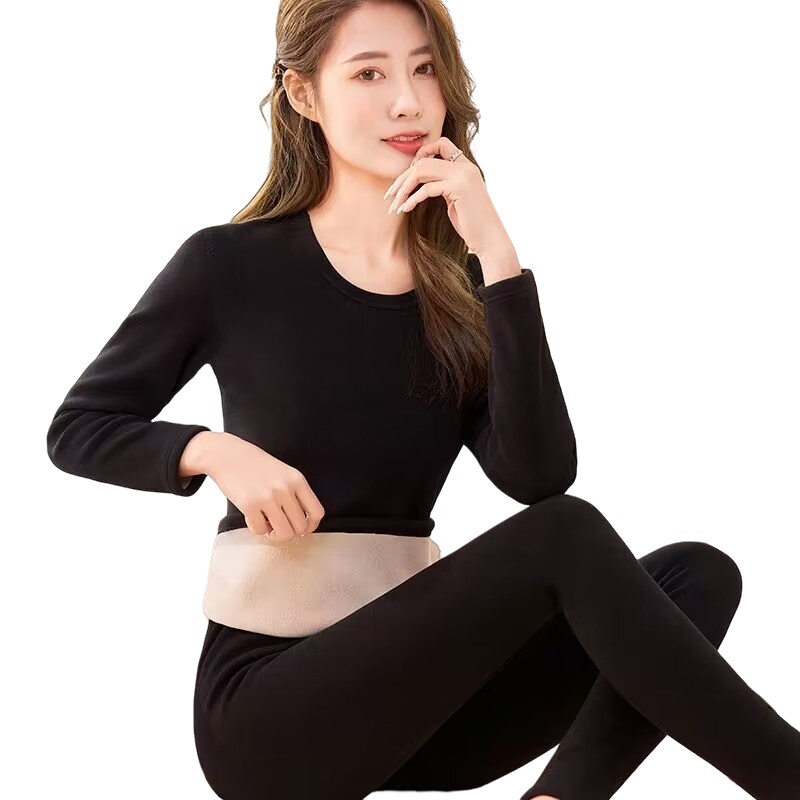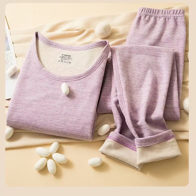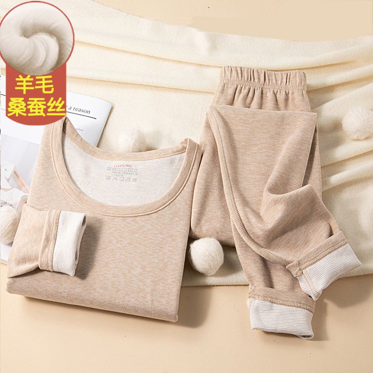 双面德绒蚕丝羊绒保暖内衣套装女