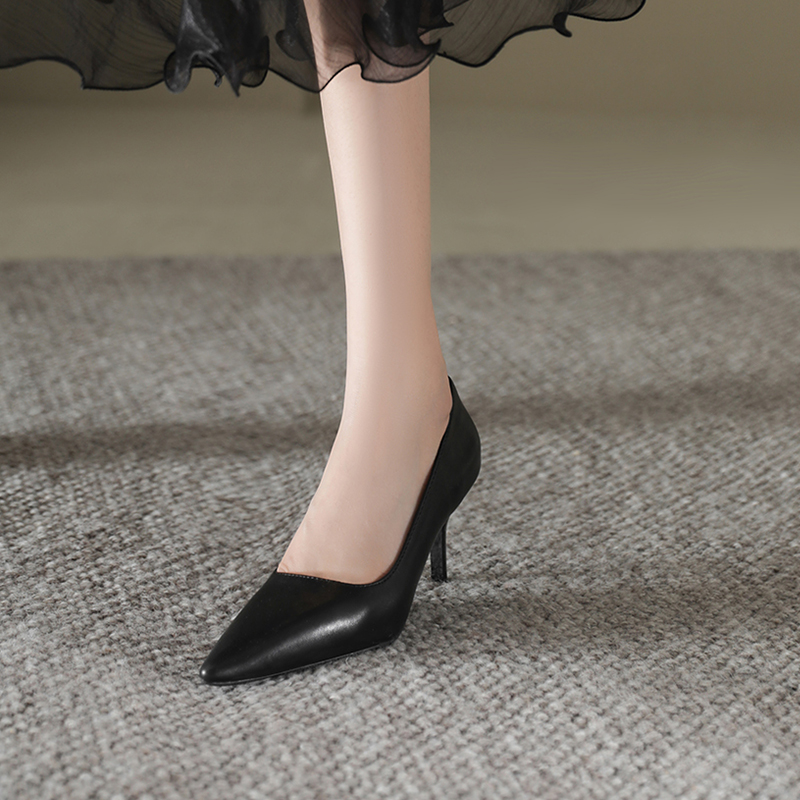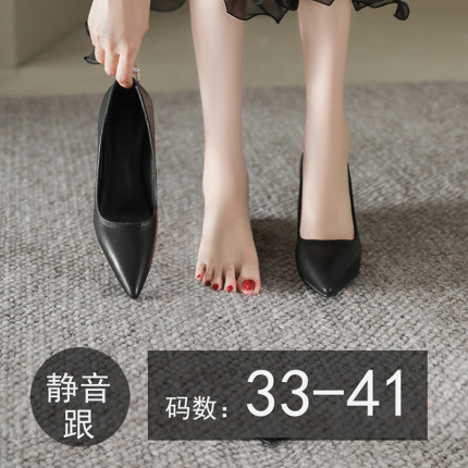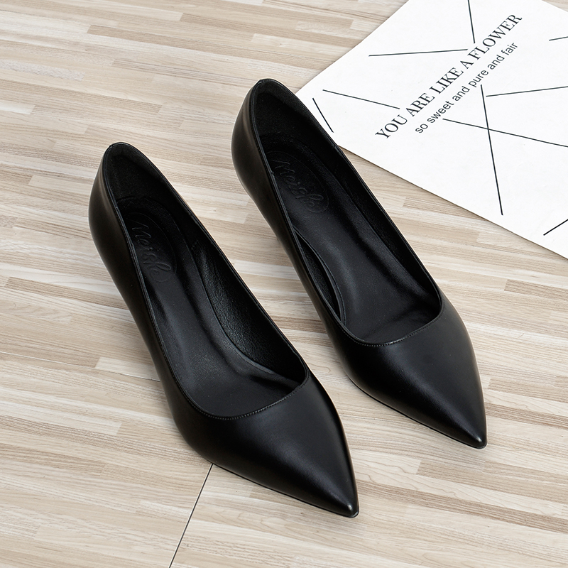 尖头高跟鞋女5cm百搭面试空姐真皮细跟法式职业黑色工作酒店单鞋