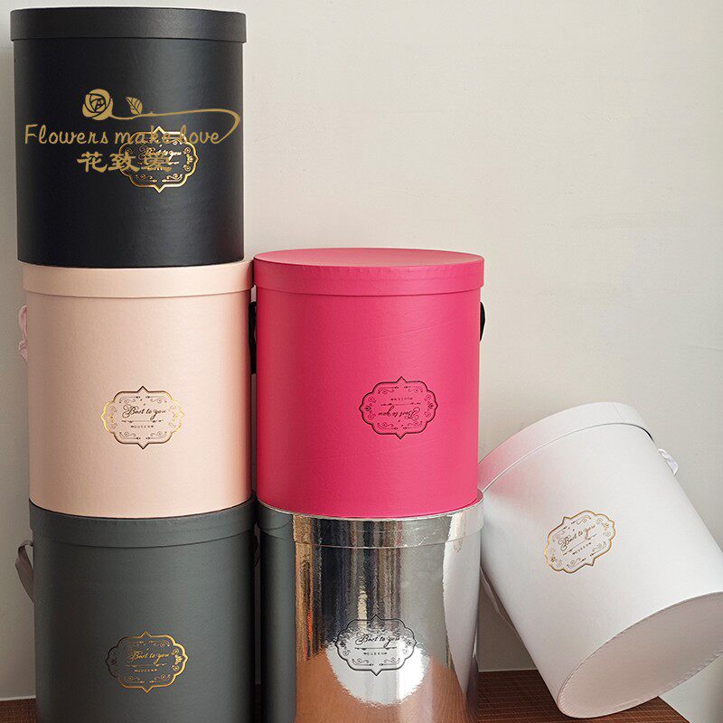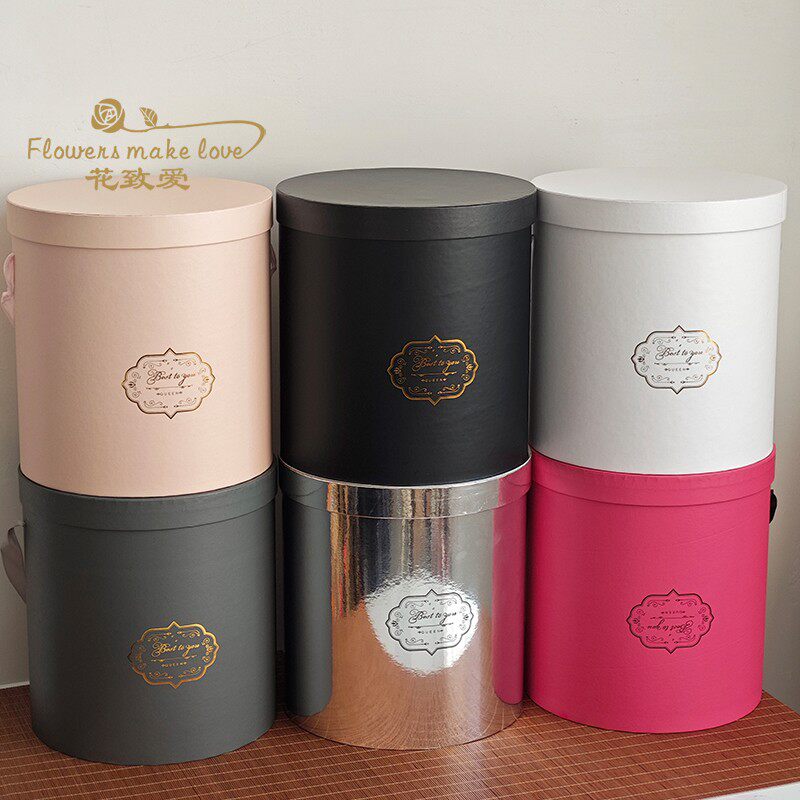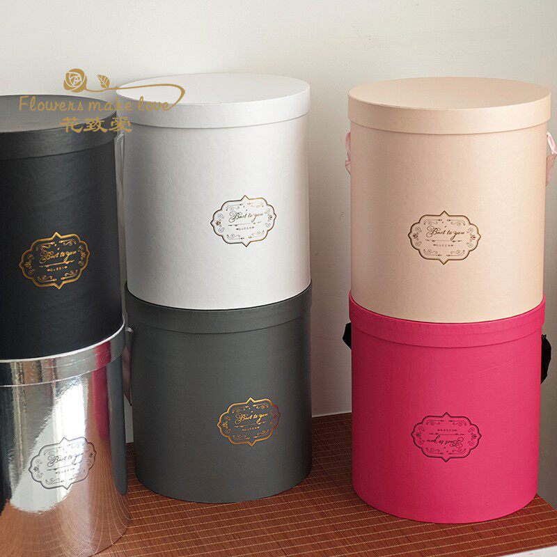 套三鲜花抱抱桶草莓熊黑色花束插花桶银色礼品包装盒大号圆形空盒