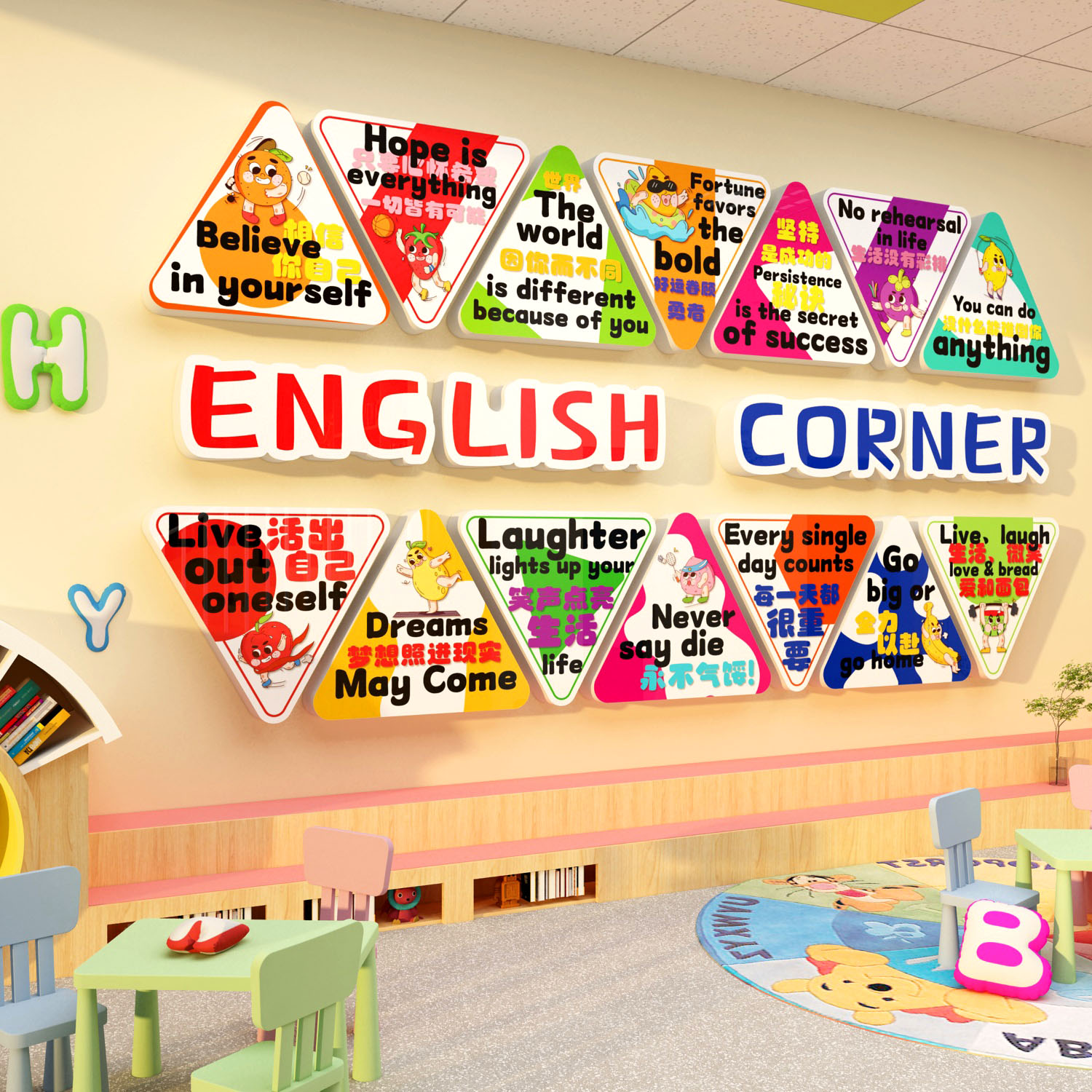 英语角教室布置装饰环创工作培训机构墙面贴纸幼儿园托管班级文化