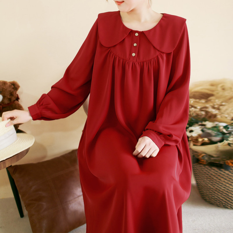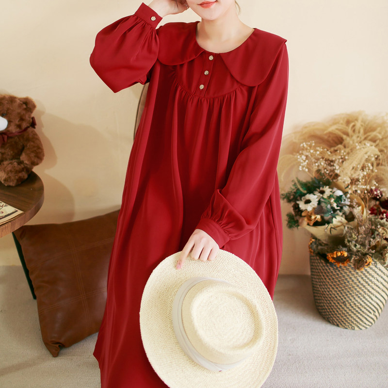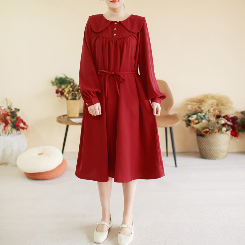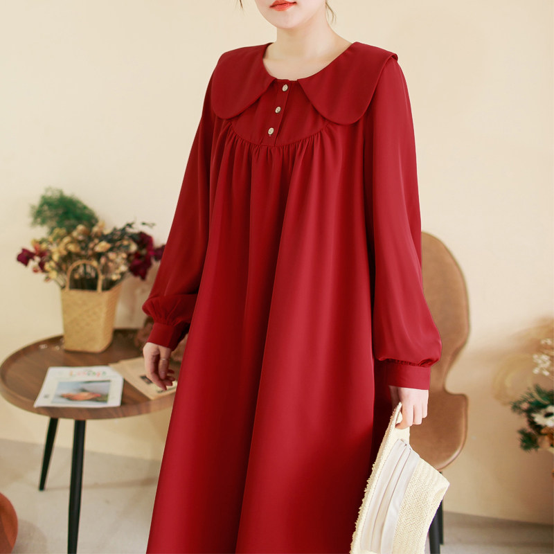 春新品彼得潘领法式红色连衣裙加大码宽松优雅长裙