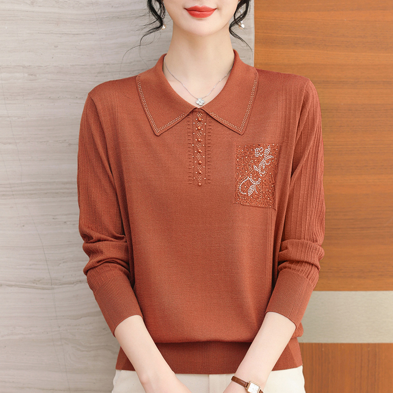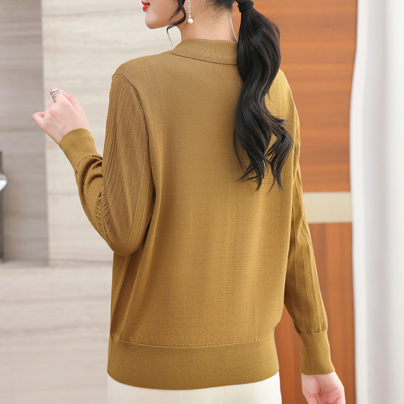 2024年新款翻领薄款针织衫女春装中年妈妈毛衣洋气时尚短款打底衫