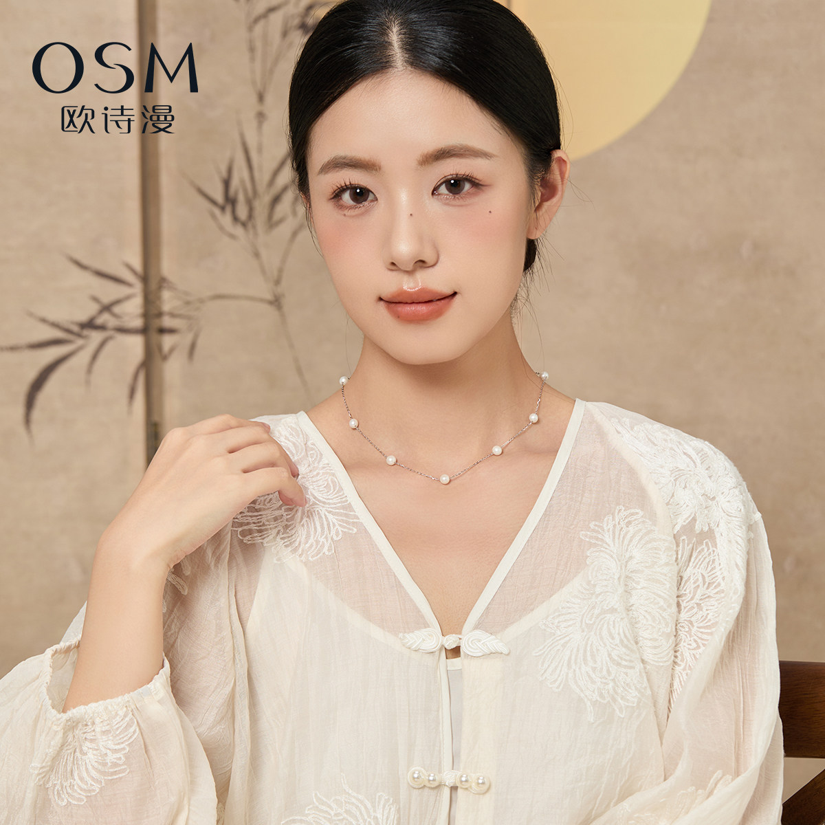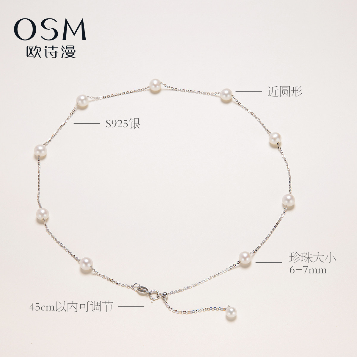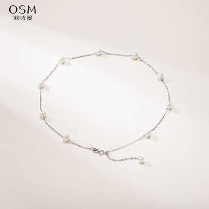 欧诗漫珠宝淡水珍珠项链6-7MM近圆形满天星吊坠百搭日常925银锦绣