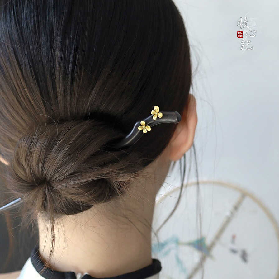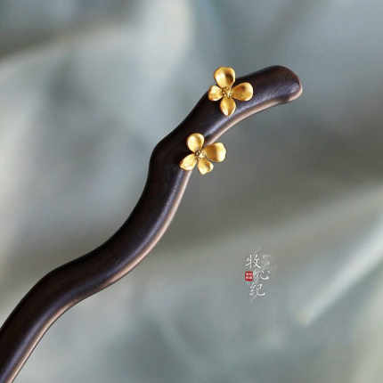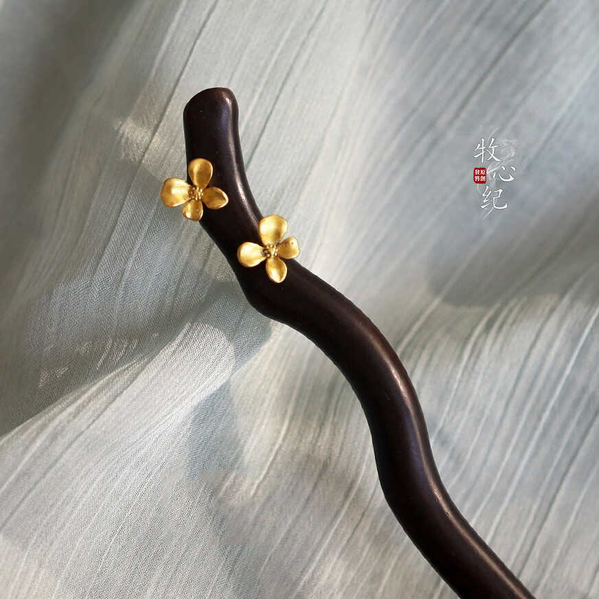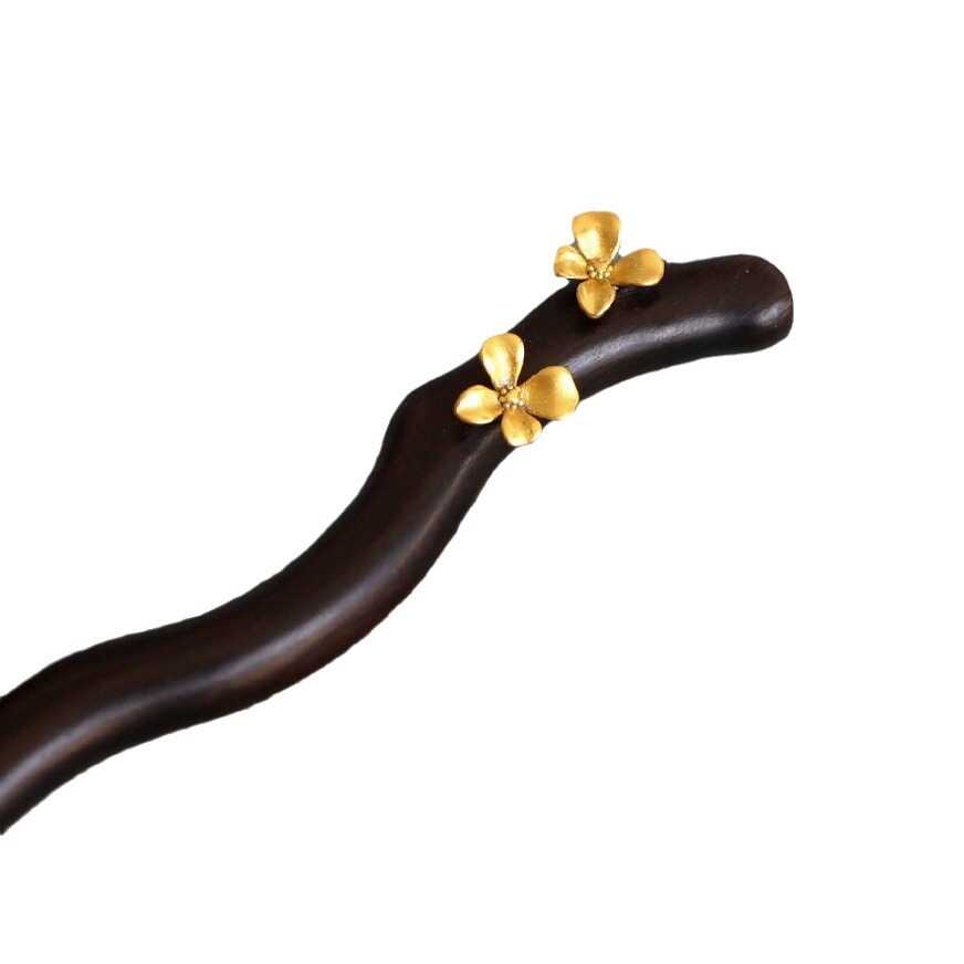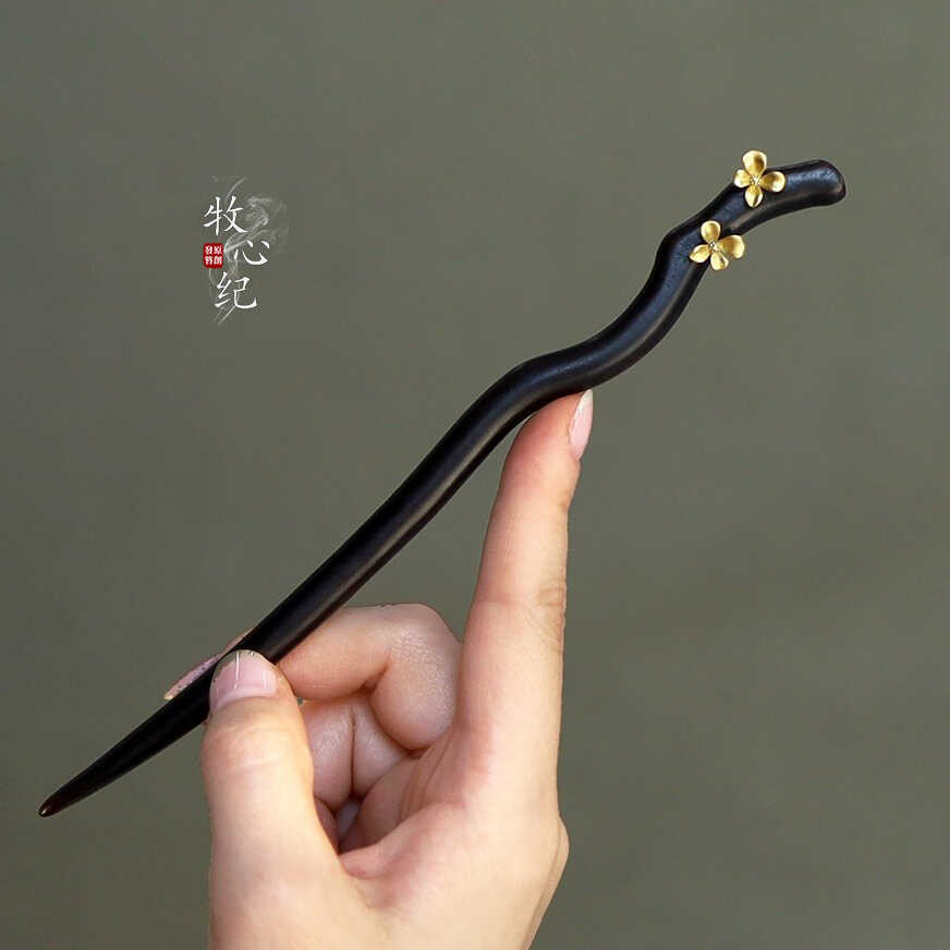 原创花开半夏镀金新中式黑檀木发簪简约百搭盘发丸子汉服旗袍头饰